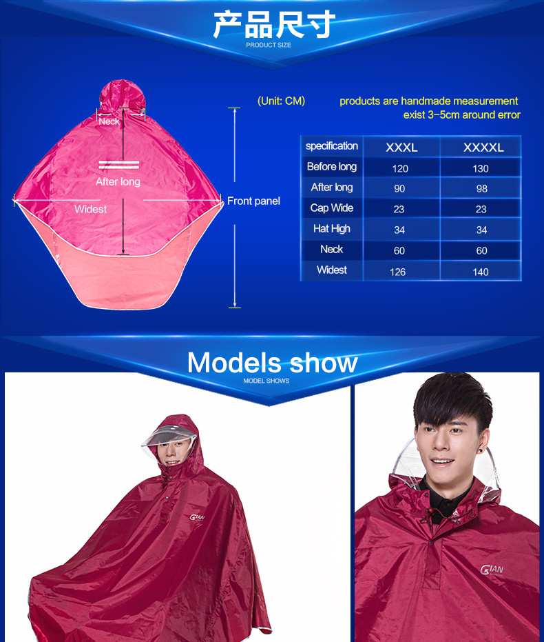 - Тип накидки от дождя:Непромокаемая одежда для одного человека
