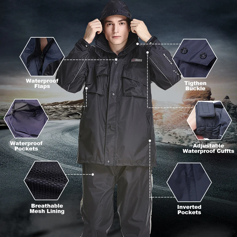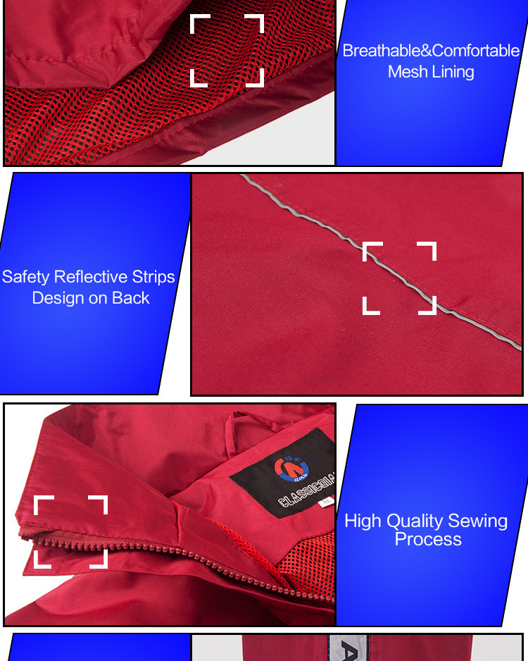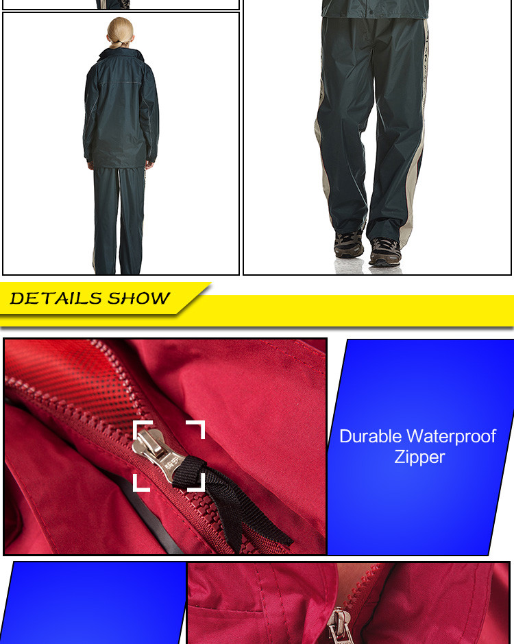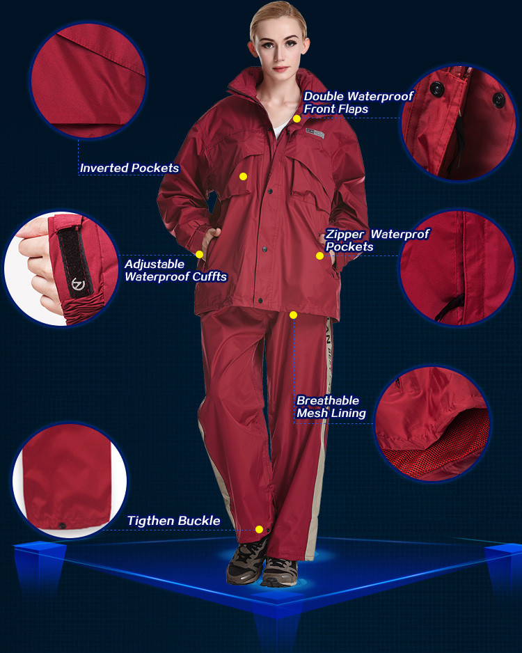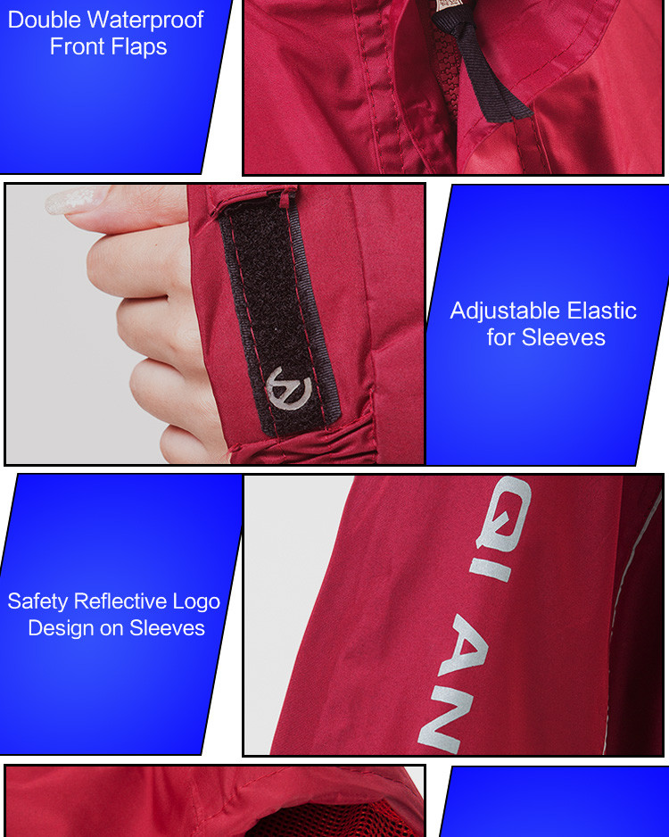 - Features:Reflective Tapes,Hidden Rainhat,Rain Jacket and Rain Pants
