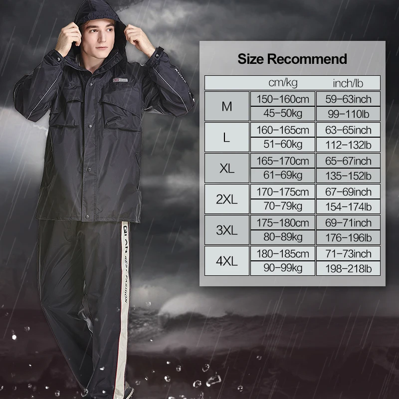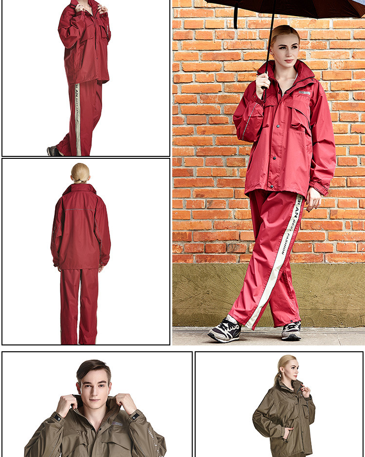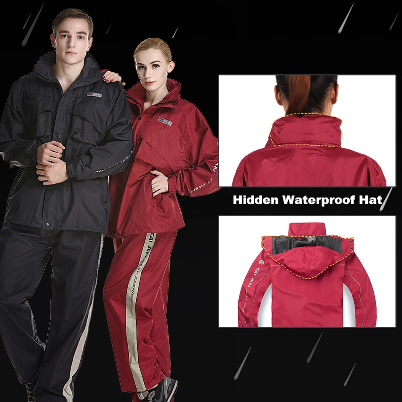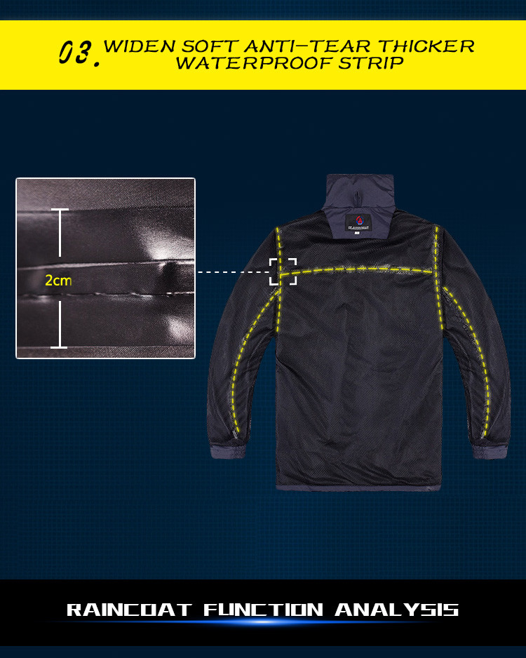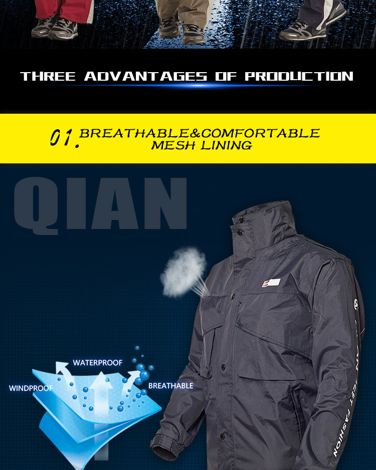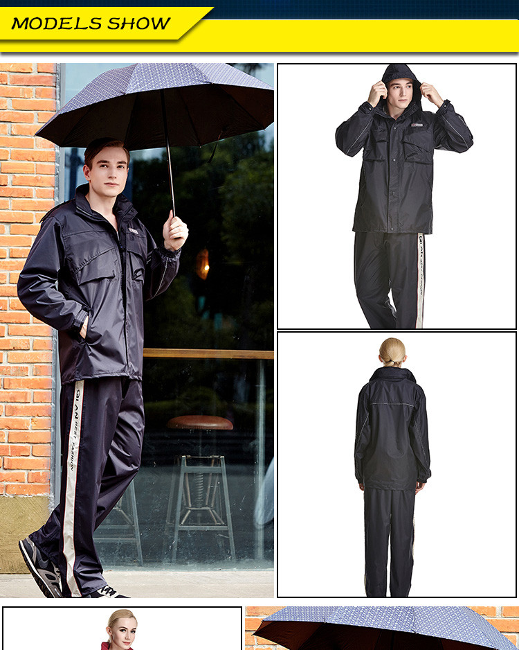 - Features:Reflective Tapes,Hidden Rainhat,Rain Jacket and Rain Pants