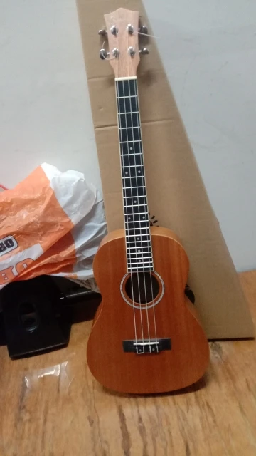 Товар пришел быстро курьером за 7 дней, упакован в коробку и мягкий пакет, укулеле без сколов и повреждений, швы чистые без потеков клея и трещин.Края нескольких ладов слегка царапали пальцы при игре, решилось напильничком за несколько минут, все равно менял струны, тк поставляется с укулельными (GCEA), а хотелось чисто баритон(DGBE).Гриф ровный, анкер присутствует, мензура в норме, строит на всех ладах, звук не как у массива конечно по глубине, но не хуже многих более дорогих аналогов.Вывод, крайне доволен покупкой, тем более за 2200р. с курьерной доставкой халявной.Andrey K. 17 октября 2021