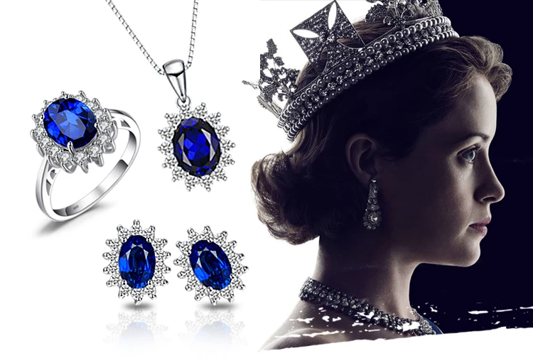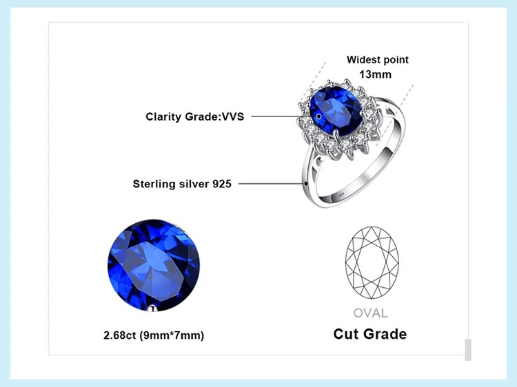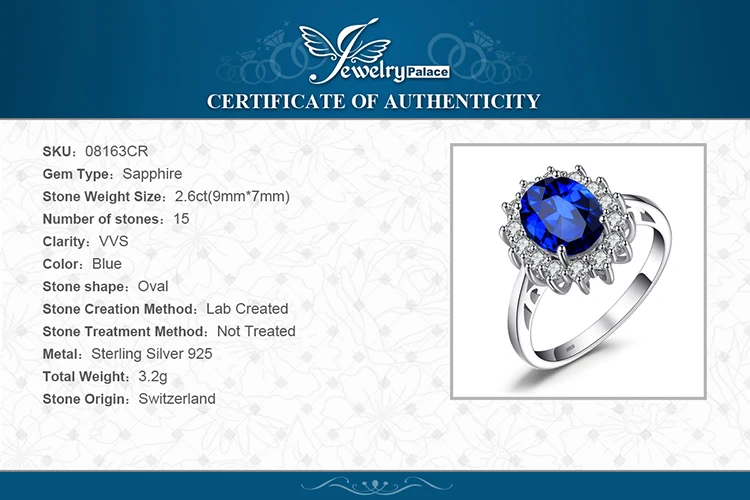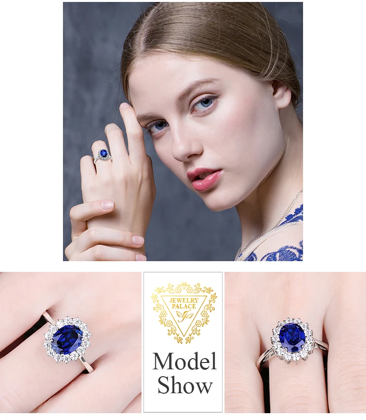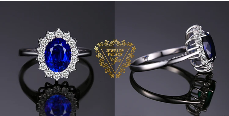 Jewelrypalace Принцесса Диана 3.2 CT создано синий сапфир кольцо стерлингового серебра 925 Обручальные кольца для Для женщин бренд Красивые ювелирны...
