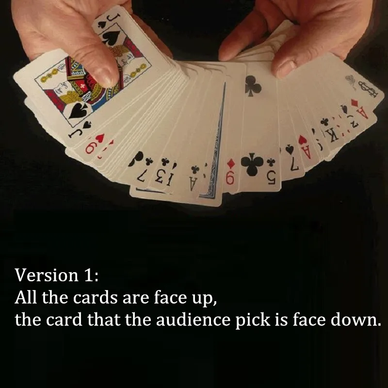 Фокусник раздает невидимую колоду карт (на самом деле ничего) и инструктирует зрителя выбрать карту, а затем положить обратно в колоду лицевой стороной вверх. Фокусник извлекает невидимую колоду и волшебным образом делает ее видимой. Но чтобы доказать, что это действительно та же самая колода, которую использовал зритель. Он раскладывает колоду, и их карта является единственной картой, обращенной в противоположном направлении. Воздуходувка ума!