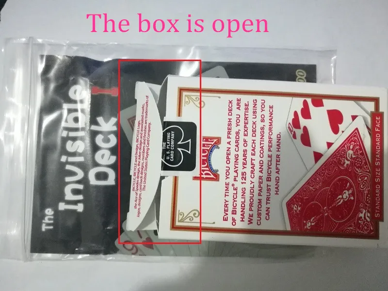 На самом деле невидимая колода сделана из оригинальной колоды США. Нам нужно открыть коробку, чтобы превратить оригинальную колоду в невидимую колоду. Но мы гарантируем, что колода 100% новая и оригинальная. Если вы не возражаете, пожалуйста, не покупайте. Как это изображение ниже.