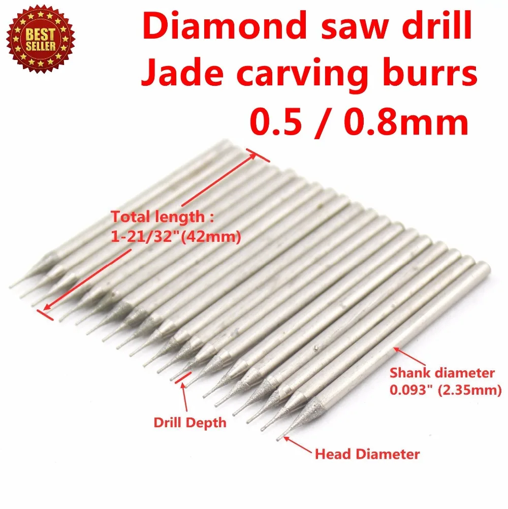 30 шт. диаметр 0,5 мм/0,8 мм Гальваническое Алмазное покрытие отверстие пилы сверла Твердые биты ювелирные изделия инструменты камень керамика ...
