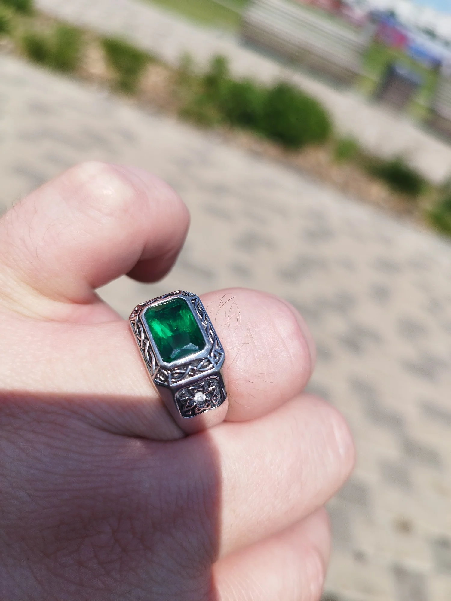 Шикарное кольцо, тонкая работа, тщательно выполненные узоры, прозрачный зелёный камень, стоит проба внутри кольца, 12 размер на русский 21,5. На руке смотрится отлично.Eugeniy G. 20 сентября 2024