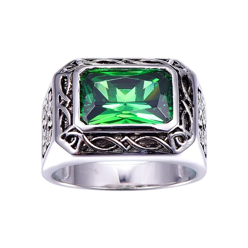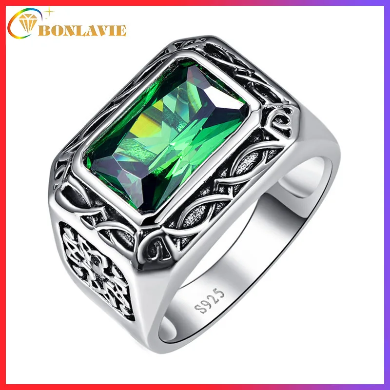 Bonlavie Fine 6.8Ct нано русский изумруд мужское кольцо Твердые 925 пробы серебряные ювелирные изделия обручальное кольцо для мужчин размер 6-14