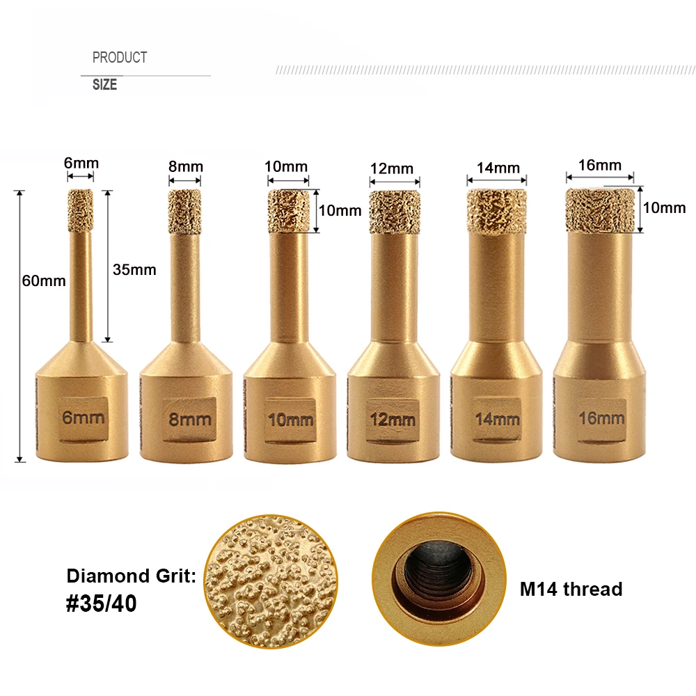SHDIATOOL 1 шт M14 ВАКУУМНОЙ ПАЙКИ Diamond бурильное сверло немного сухой алмазного сверла плитка отверстие увидел сверло каменное Корона бурения би...