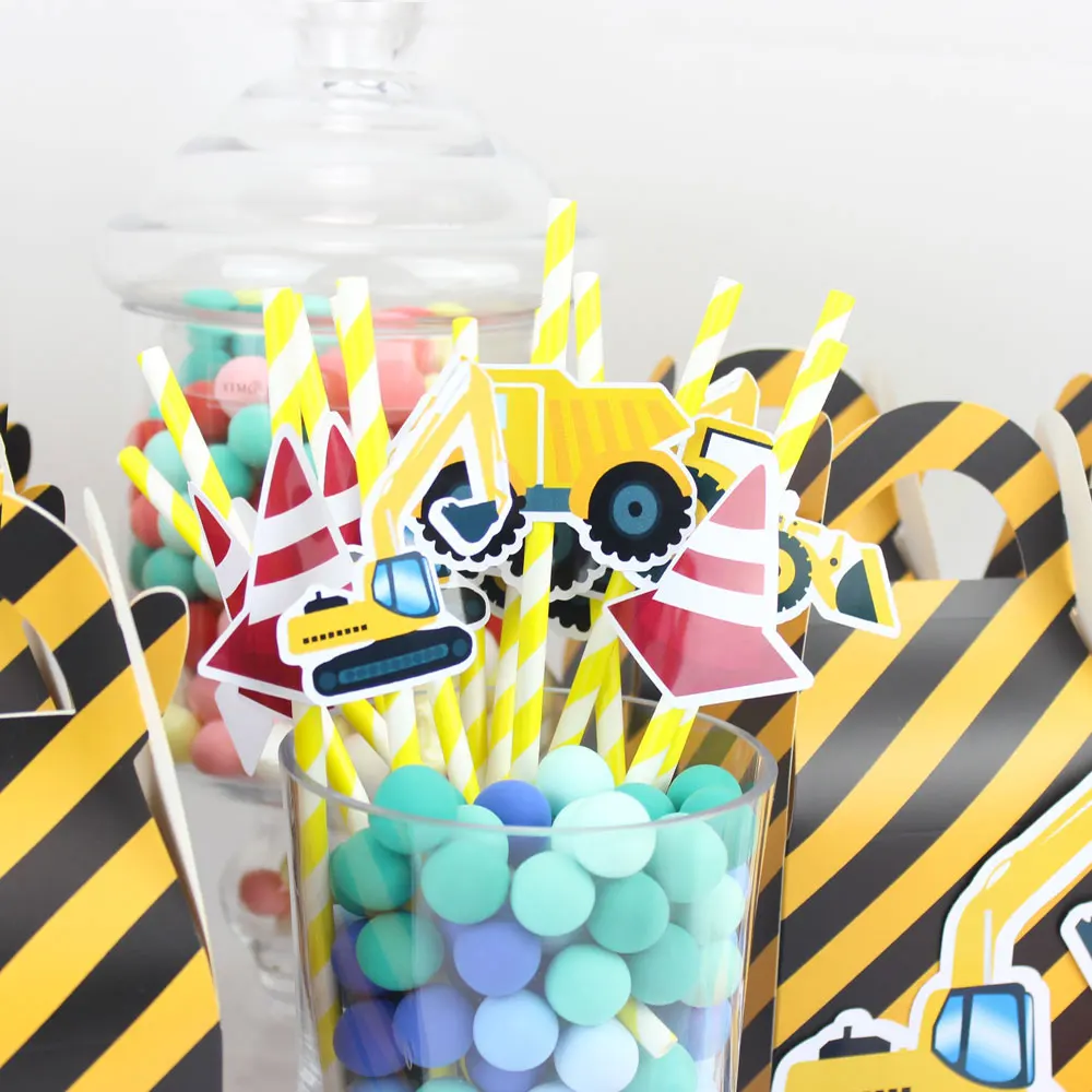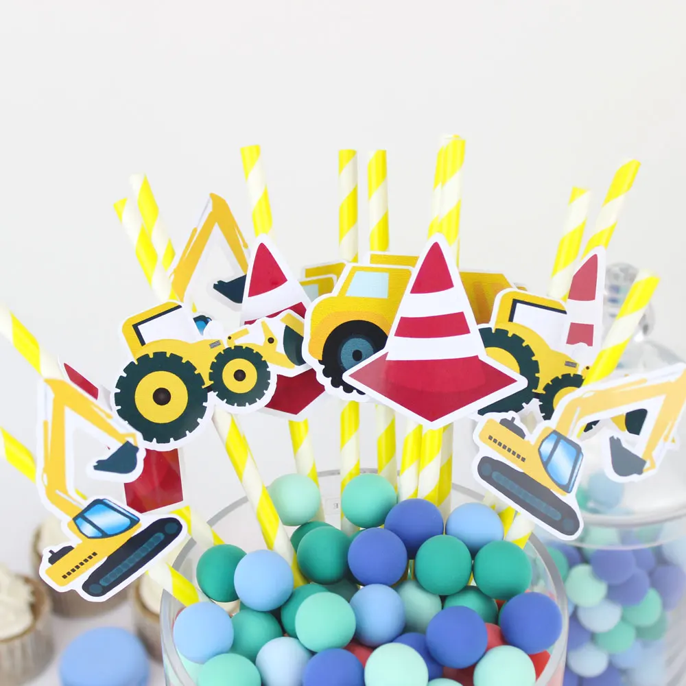 Строительные грузовики соломинки 20 шт бумажные соломки для дней рождения вечерние праздничные принадлежности украшения бумажные соломинк...