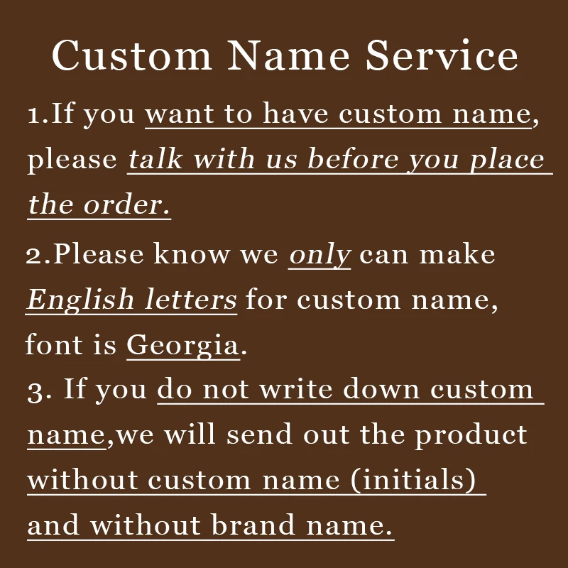 3. Если вы не запишете свое имя, мы отправим товар без индивидуального имени (инициалов) и без названия бренда.