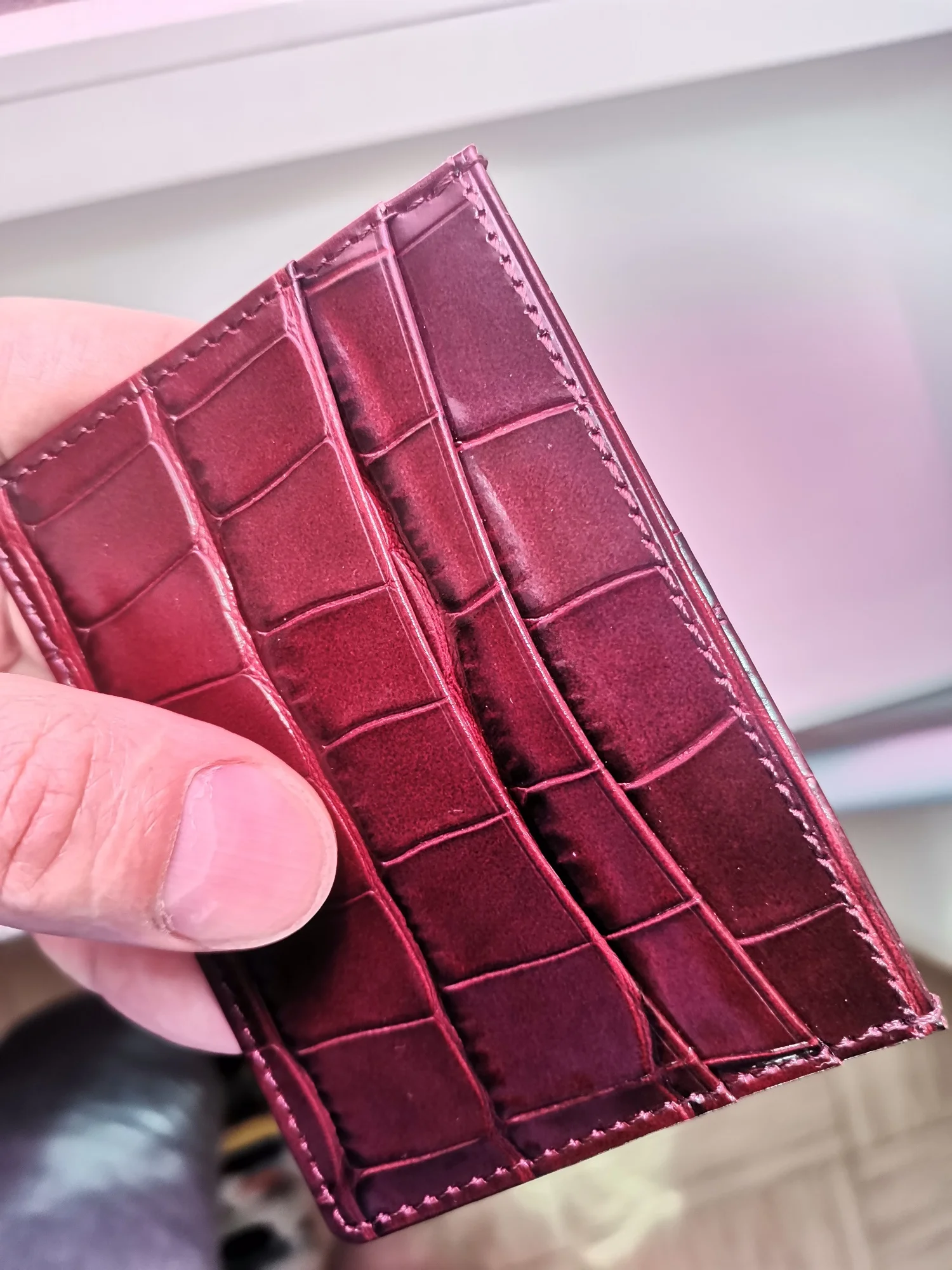 Hiram Beron, натуральная кожа, держатель для карт, для мужчин, коровья кожа, с крокодиловым узором, кошелек, Бесплатная, на заказ, с именем, ID, креди...