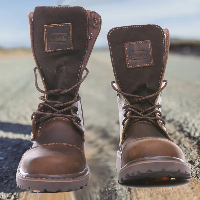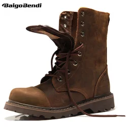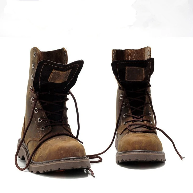 Ботинки мужские из натуральной кожи, круглый носок, на шнуровке, до середины икры, Рабочая защитная обувь для верховой езды, зимние мотоциклетные уличные ботинки