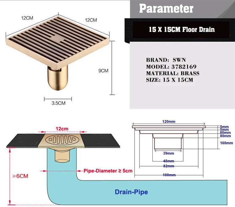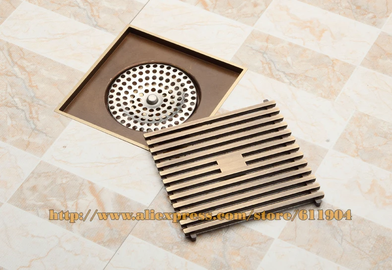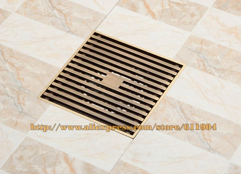 12x12 см квадратный Слив для ванной и душа, слив для пола, ловушка для отходов, сетка, проволочный Слив для пола, античная латунь 3782169
