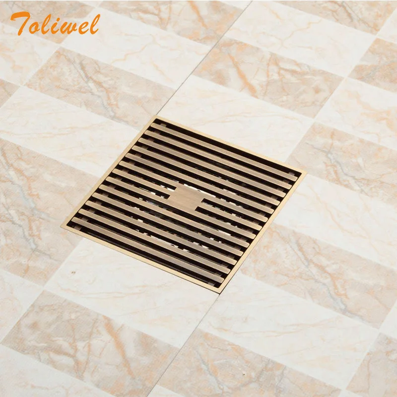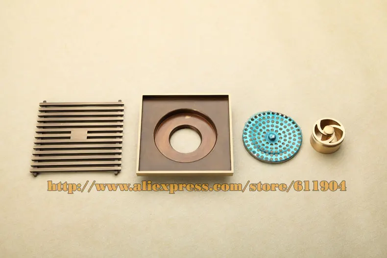 12x12 см квадратный Ванная комната душ Трап крылом ловушка отходов Решетка ситечко провода трапы античная латунь 3782169