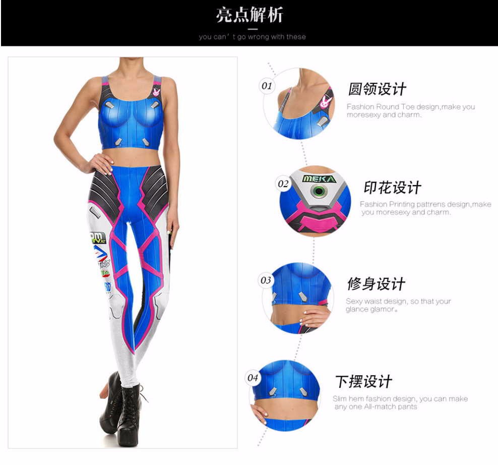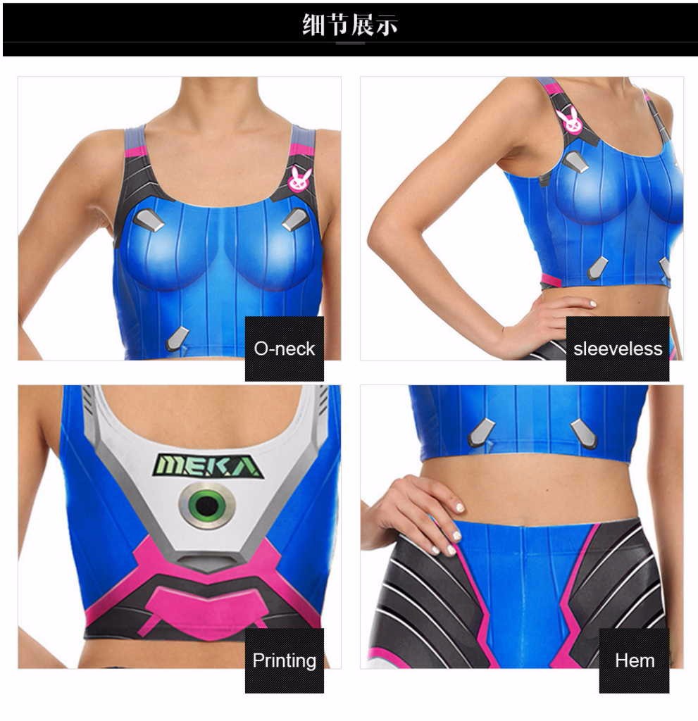 Женский костюм для косплея Игры Ow Dva с 3D печатью, обтягивающие топы и брюки из игры Over D.va, леггинсы, одежда, летний обтягивающий костюм