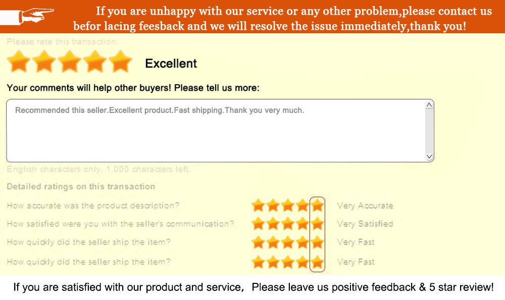 2. Дефектные предметы должны быть сообщены и возвращены нам в течение гарантийного срока (и в оригинальной упаковке, если это возможно). Вы должны сказать нам, что такое дефект и дать нам ваш Aliexpress ID. Мы не отправляем товары по воздуху или не заменяем товары с истекшим сроком гарантии. Вы соглашаетесь со всеми вышеперечисленными правилами при покупке в нашем магазине!