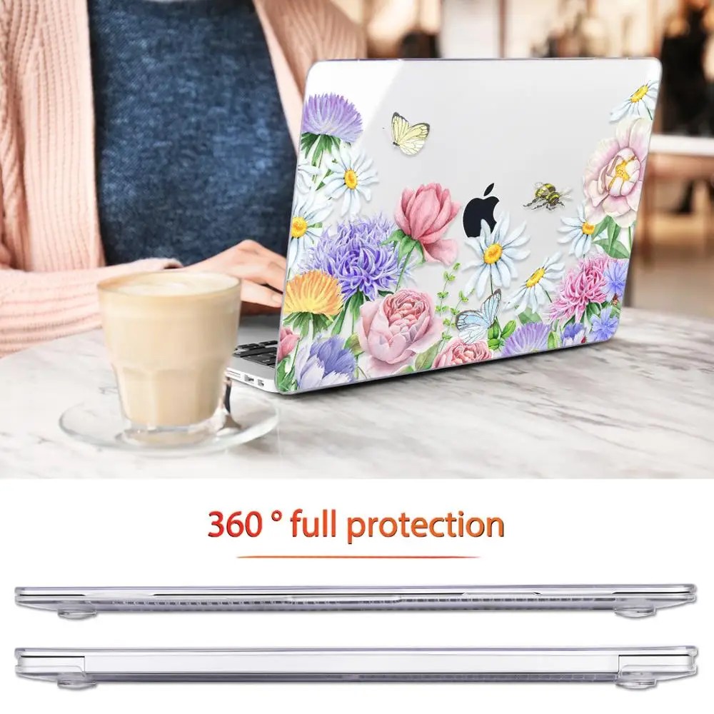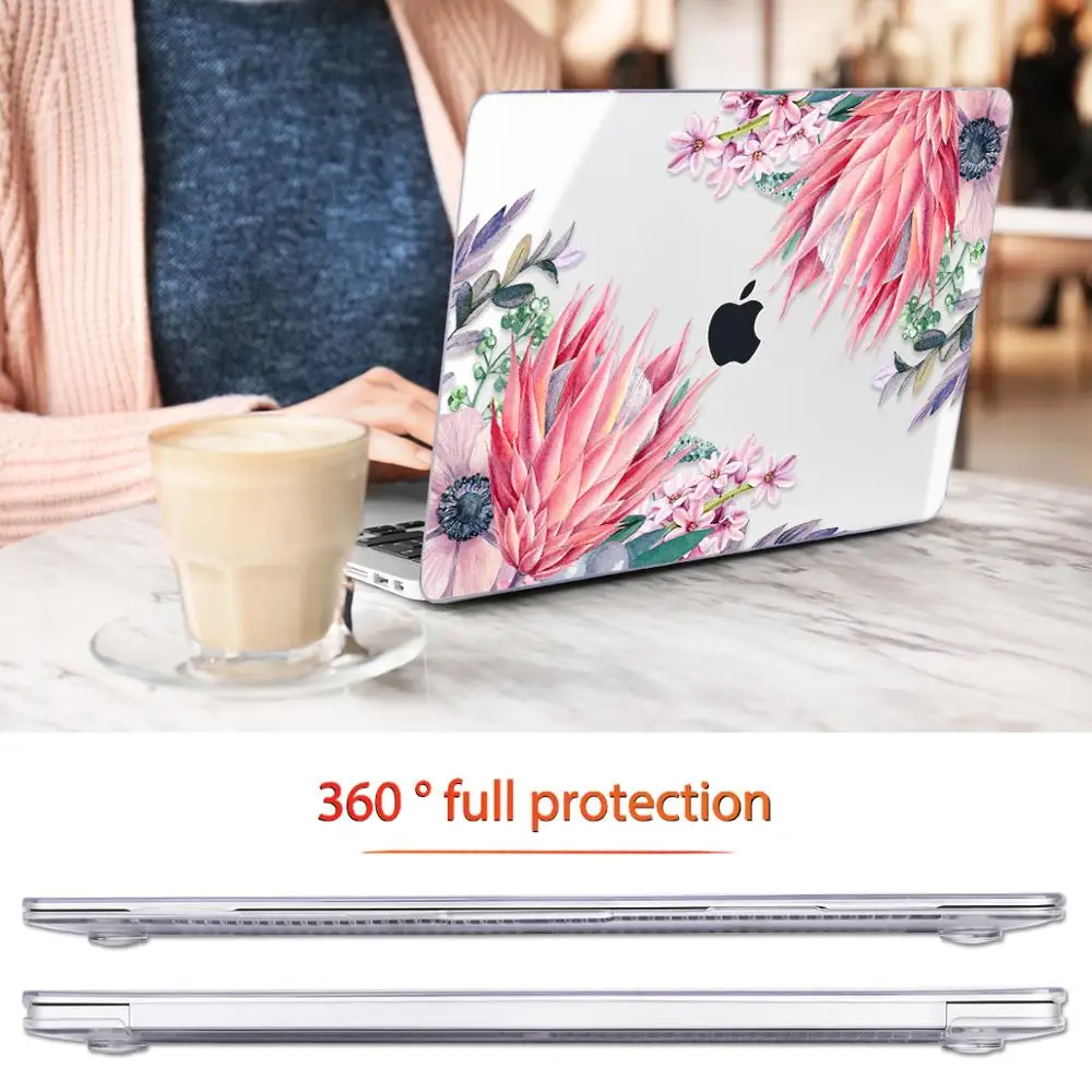 Цветочный чехол для ноутбука MacBook 12 Air 11 Air 13 A1466 A1932 Retian Pro 13 15 2018 Touch bar пластиковый жесткий чехол Keybaord Cover