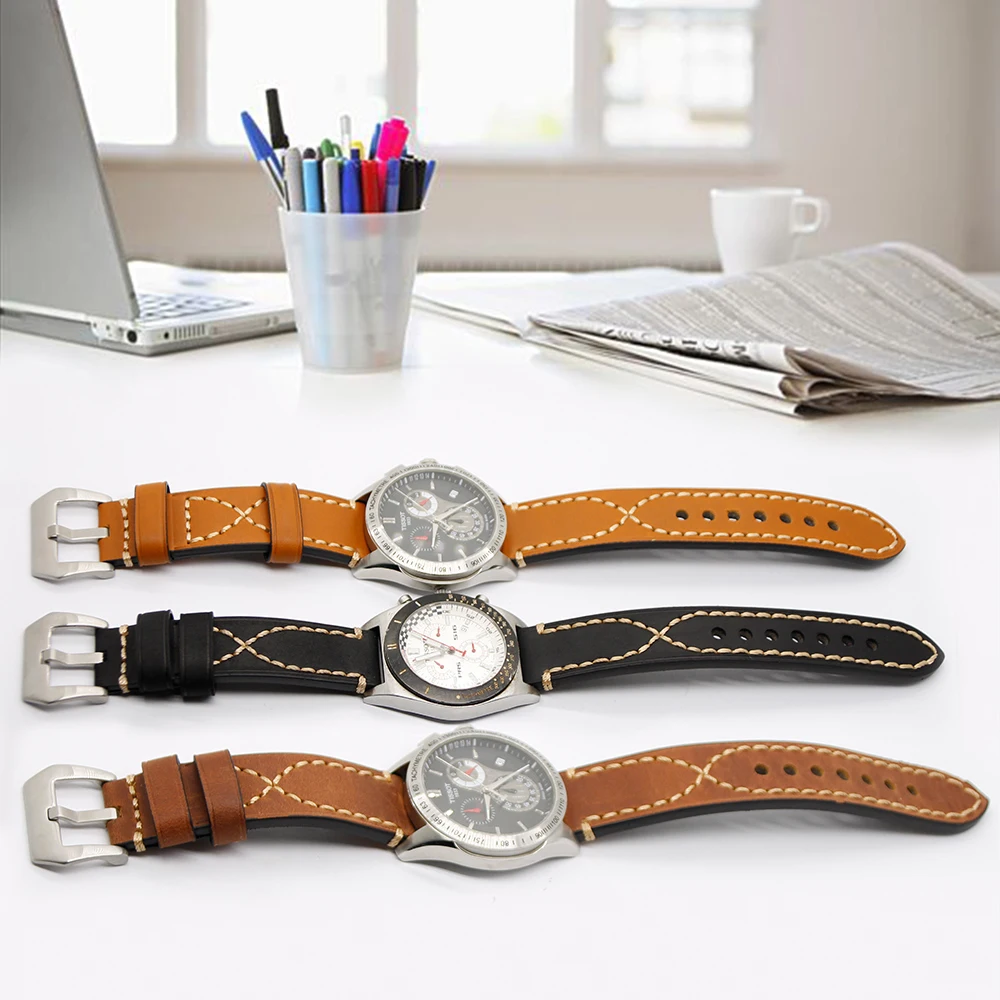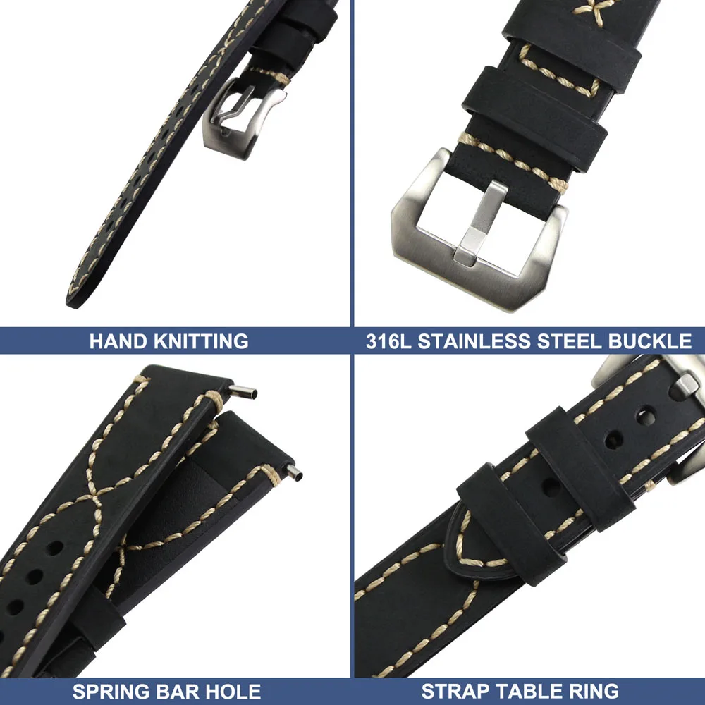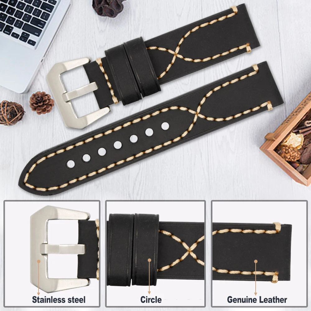 Ремешок для часов ZLIMSN из натуральной кожи с пряжкой из нержавеющей стали для Panerai 20 22 24 26 мм