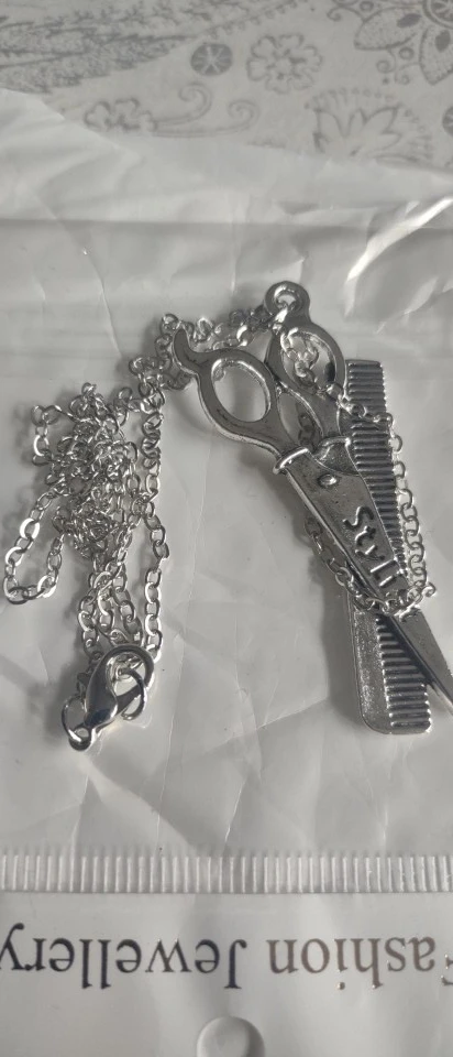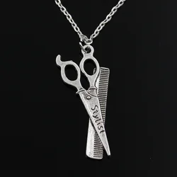 Новая Мода Парикмахерские ножницы-гребень кулон стилиста круглый крест цепи Короткие Длинные мужские женские серебряные ожерелье ювелирн...