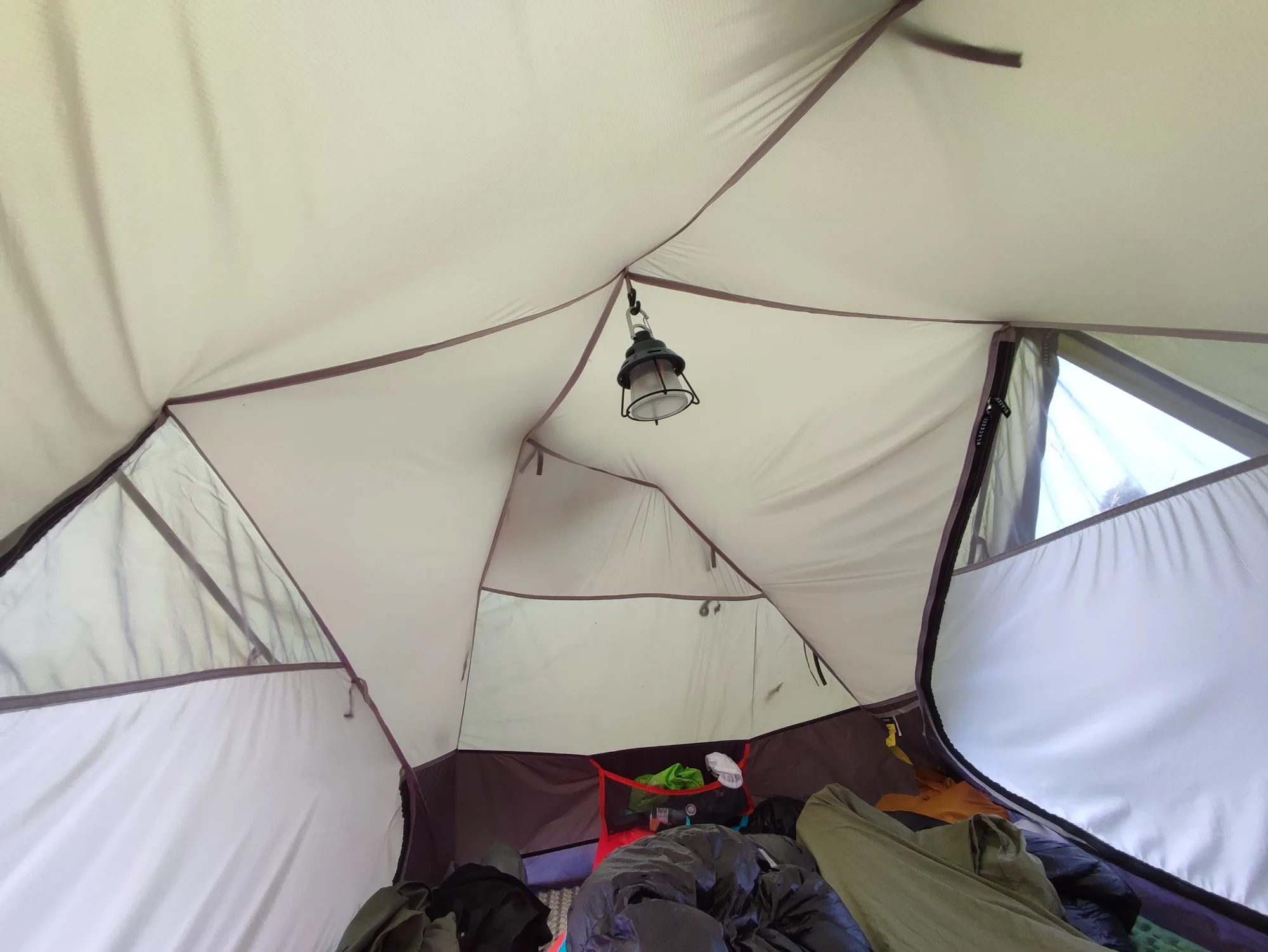 5. Внутреннее пространство достаточное для хранения вещей двух человек в тамбурах, множестве карманов на стенках. Имеется также крючок для лампы.