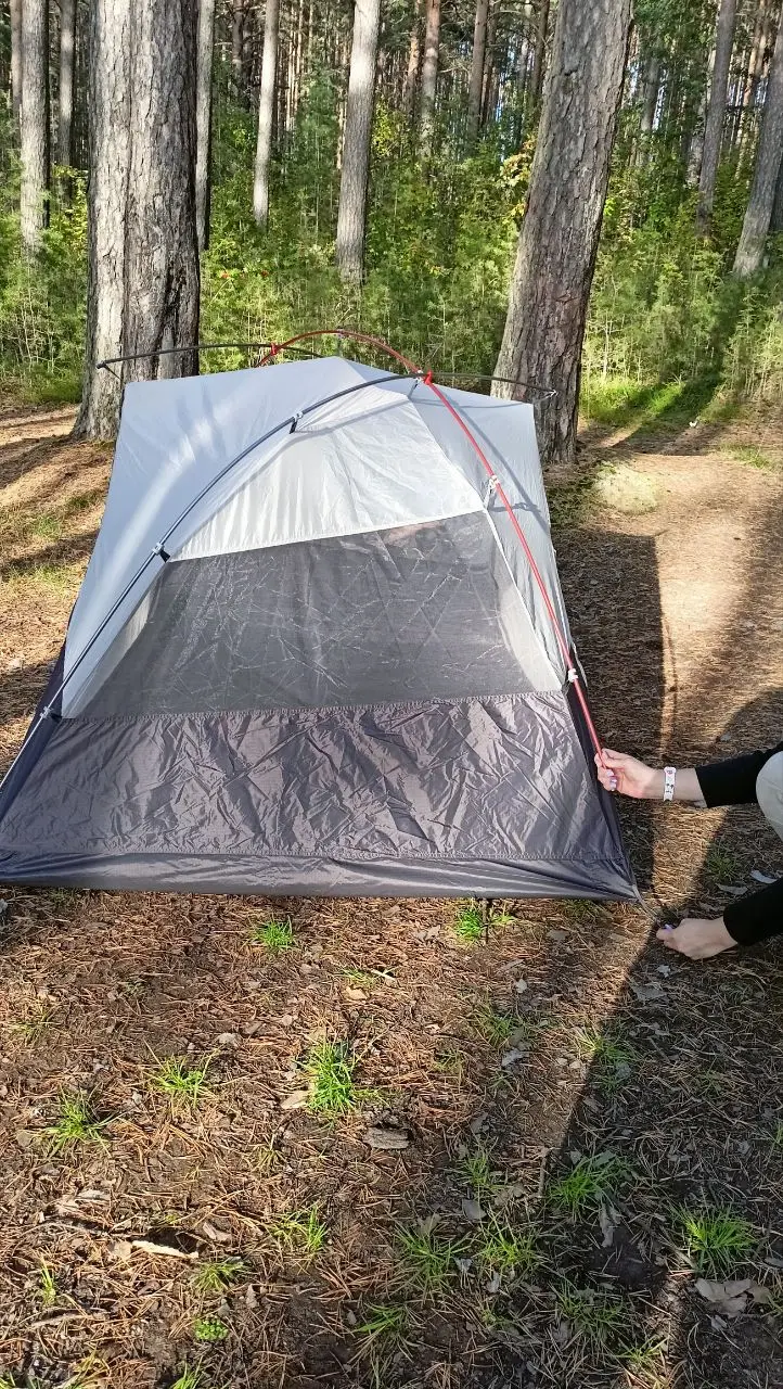 палатка огромная! в смысле, внутри места для 2х человек с запасом! мой рост 185-помещаюсь с комфортом. единственный минус -нет футпринта, пришлось заказывать отдельноMike T. 21 июня 2024