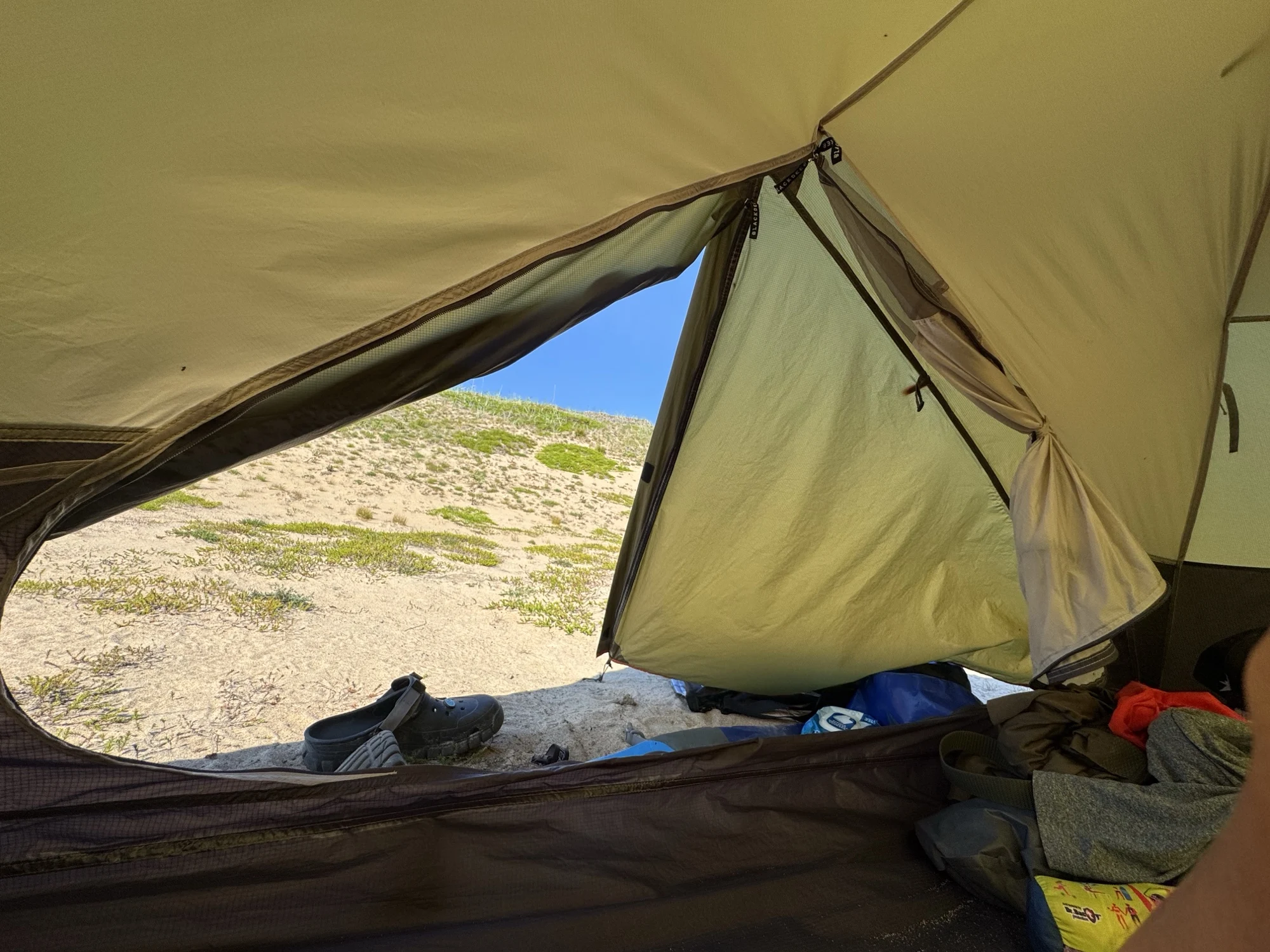 палатка выдержала ветер 25м/с при том без доп растяжек только родные. при росте 202 см в пузовом спальнике помещаюсь (запас минимальный) на фото видно как вбило вход , растяжки вырвало из земли из-за специфики грунта. материалы добротные , взять самому нудный футпринт не сложно , к молниям надо привыкать. могу смело рекомендовать для высоких людей ;) особенно если поймать распродажу. покупал по скидке за 10760 в 2024 годуAndrei L. 9 августа 2024