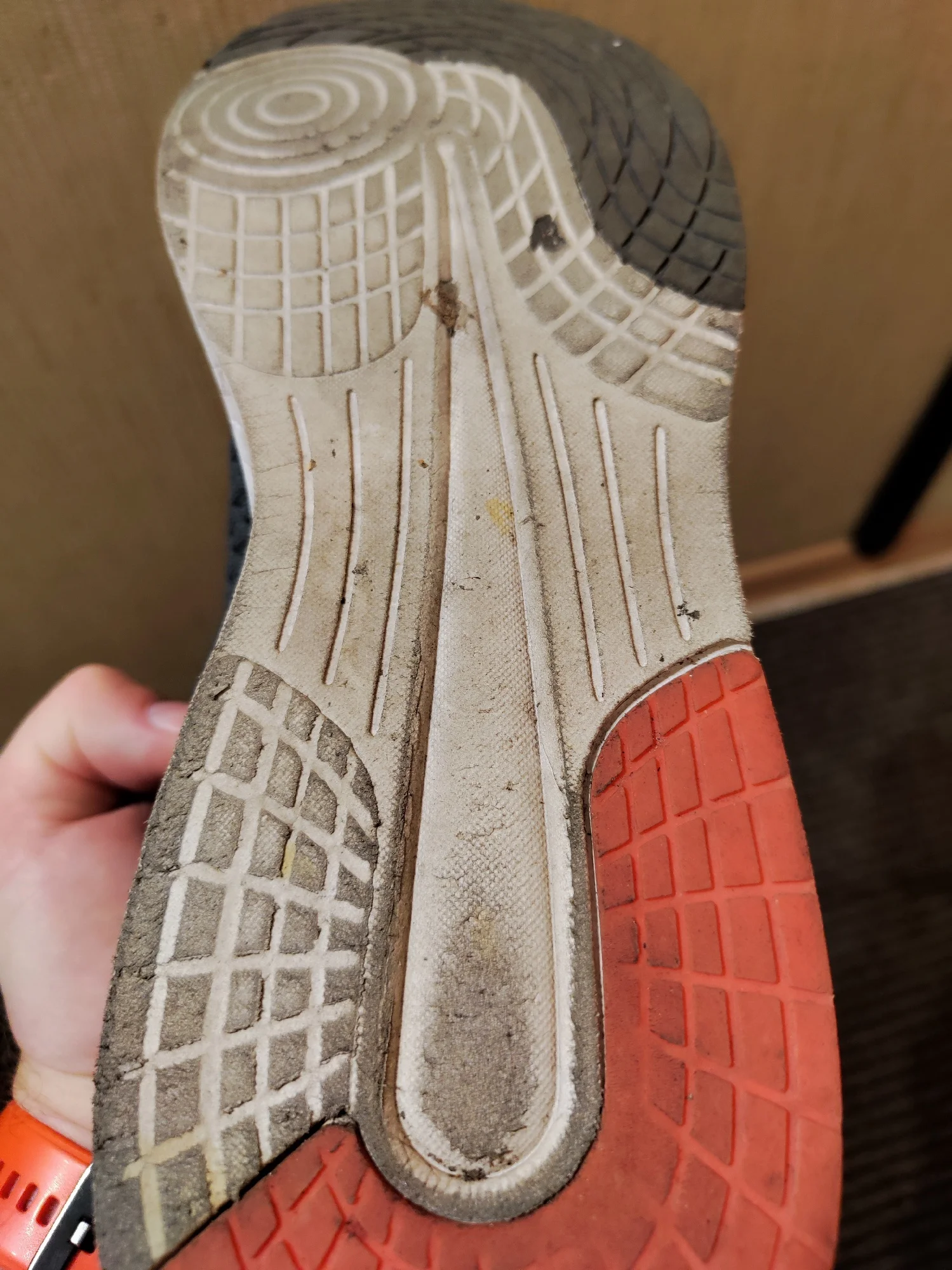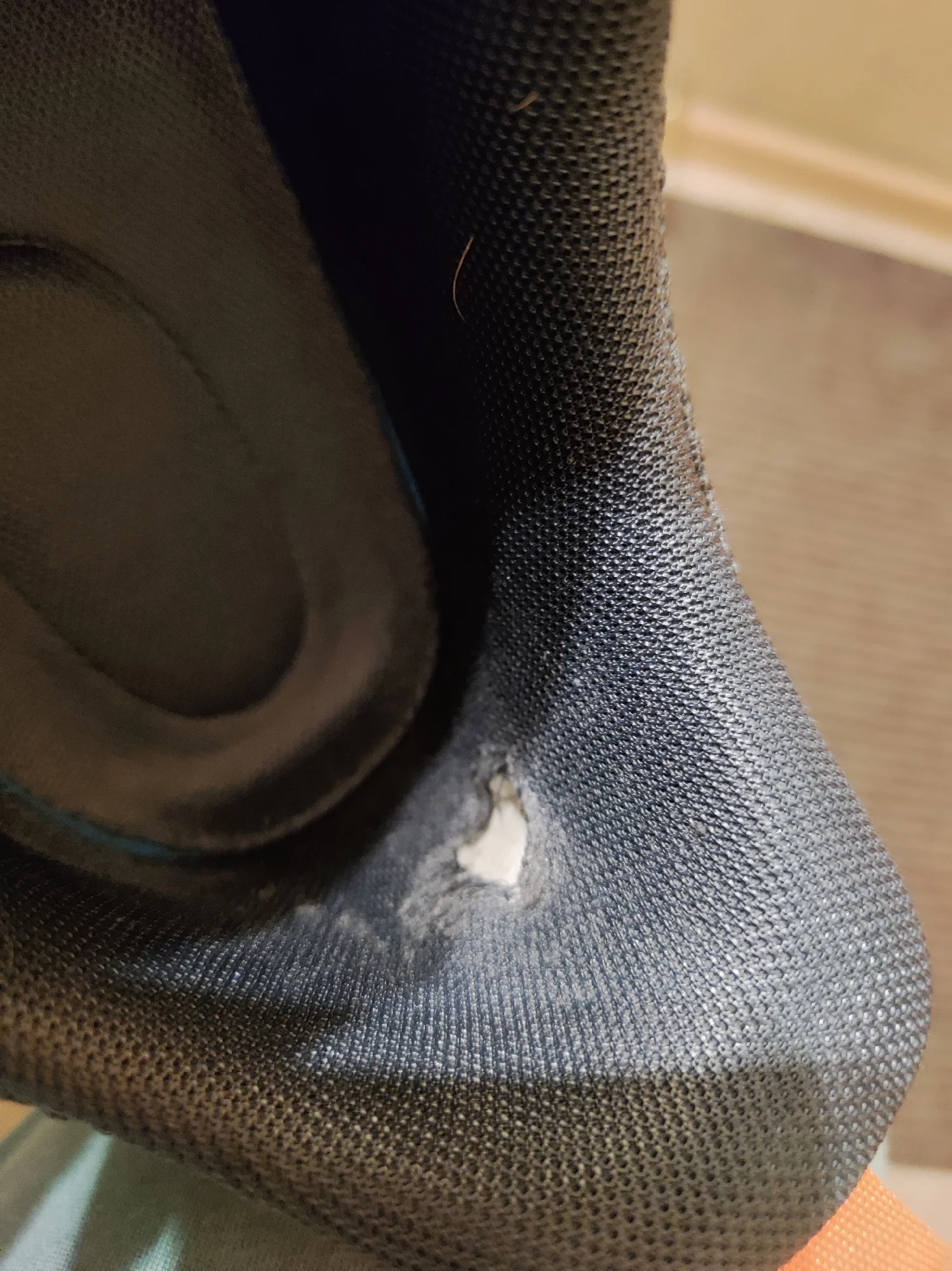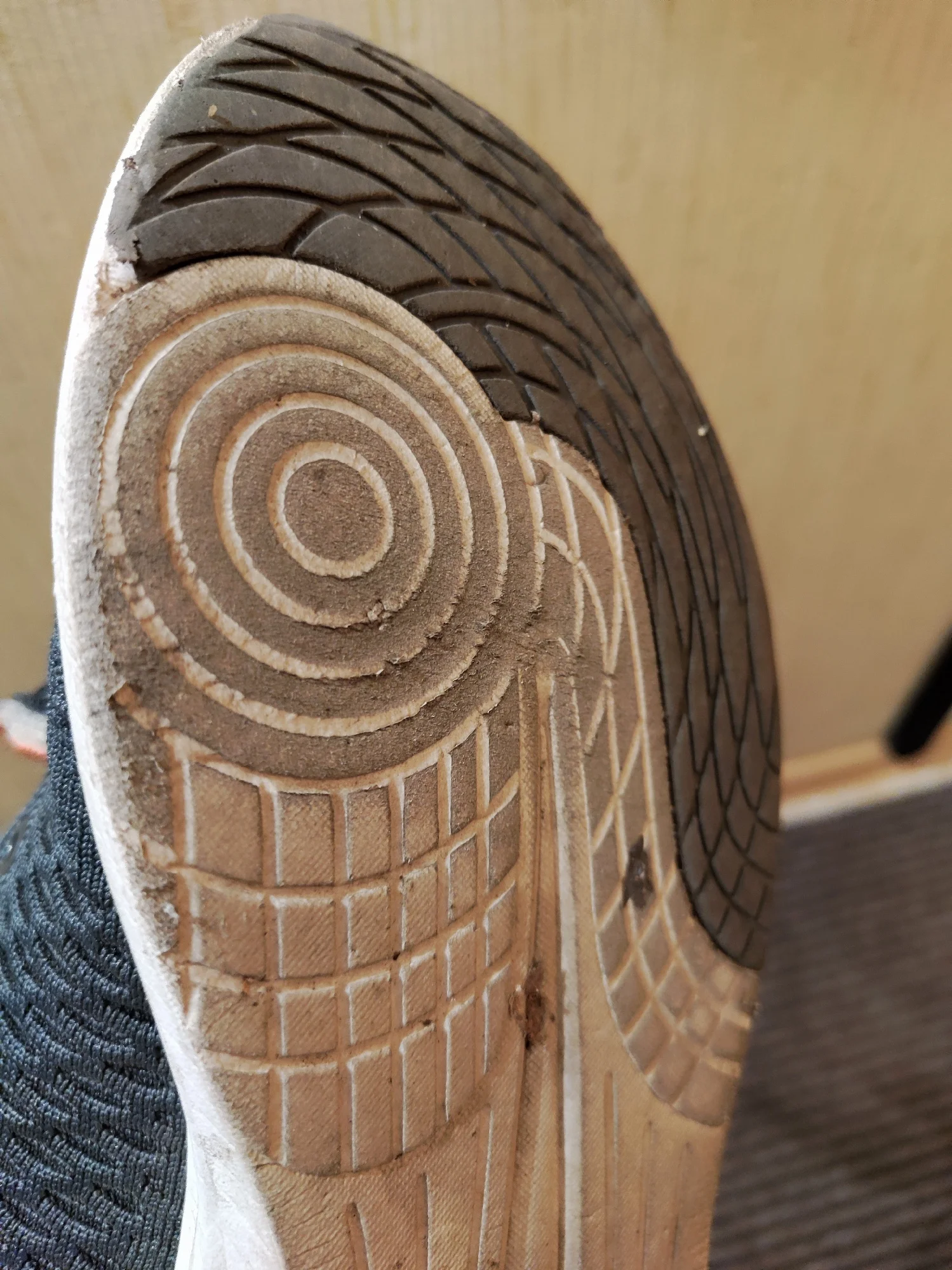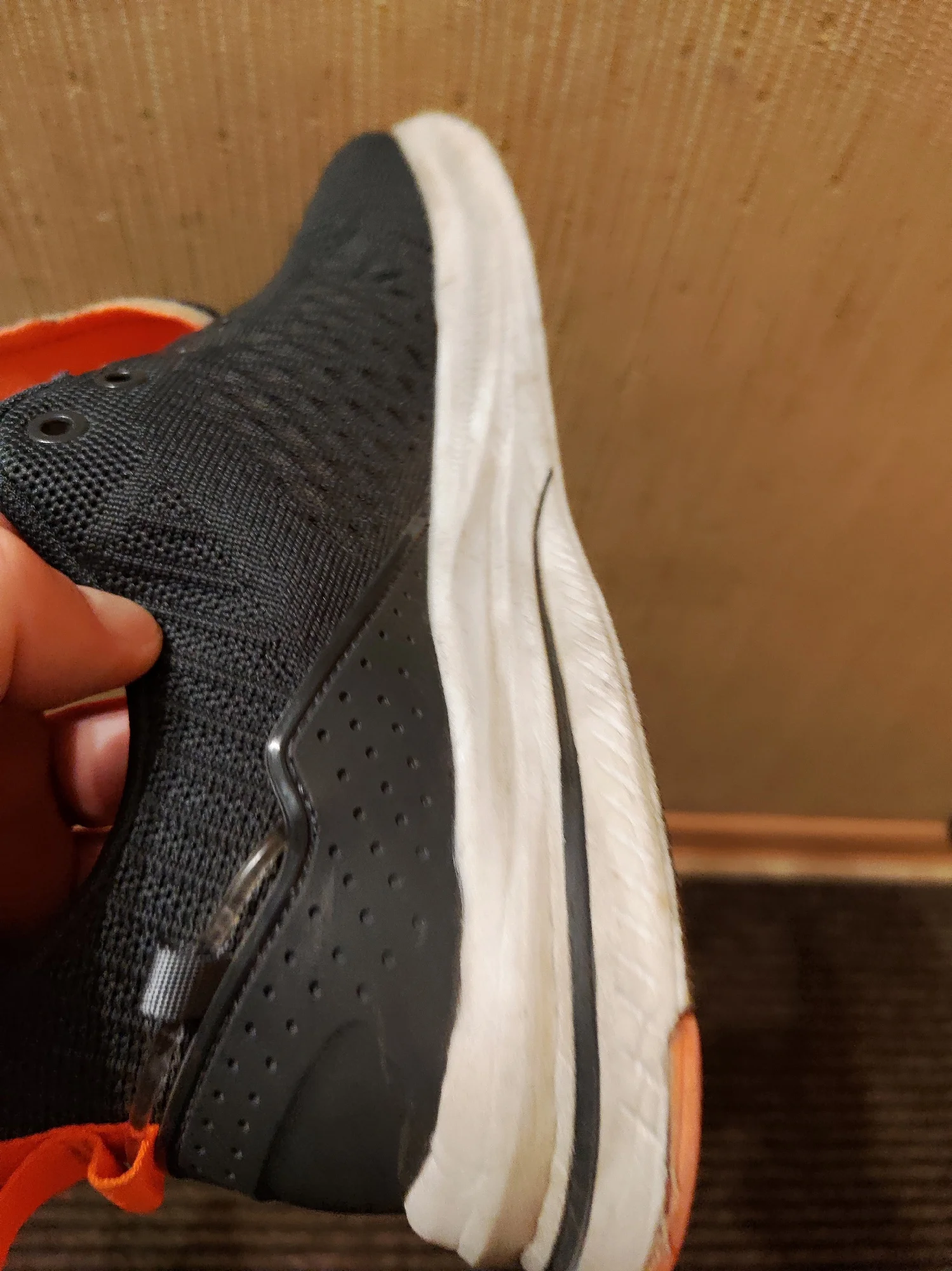 доставка быстрая, упаковано в обычный пакет. сами кроссовки лёгкие, удобные, немного болтается пятка. на фото износ после двух месяцев носки. внутри начала отклеиваться подкладка, на пятке подкладка уже протерлась. значительный износ и смятие подошвы. резюме: кроссовки неплохие за тысячу рублей на один сезон. меня устроил этот вариант. рекомендую товар и продавца.