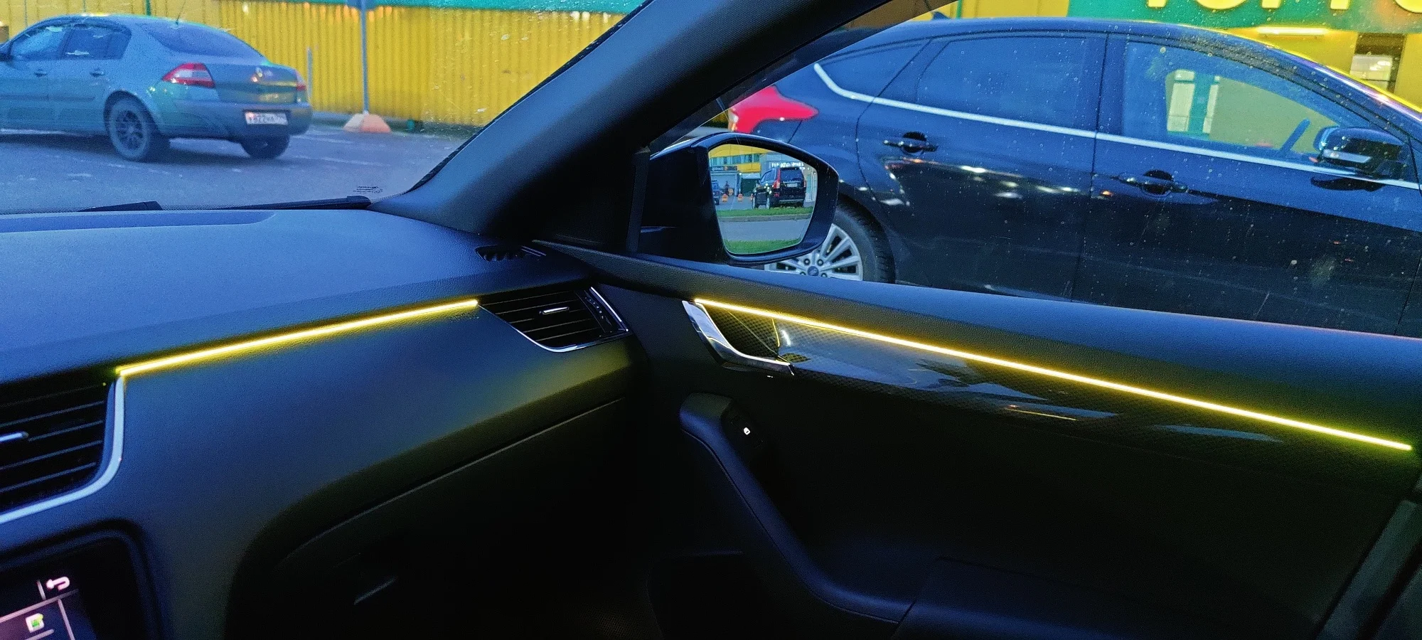 Что сказать давно хотел установить себе подсветку но все не доходили руки. Поиска нашёл у этого продавца у него самое большое количество продаж и отличный отзыв. Оплатил был честно удивлён что пришёл товар меньше чем за неделю. Всё отлично упаковано коробка целая без повреждений в нутри все прекрасно уложенно. Что конкретно по товару вме работает идеально за секунду поставил себе приложения. Сами ленты установил в дверные карты на Lexus nx200 это ну вообще легко, нашёл питание на дверях взял его от стеклоподъемников а панели от подсветки ног. Единственное не стал ставить в ноги честно очень ярко светит но это по мне. После всего остался кусок на 60см
