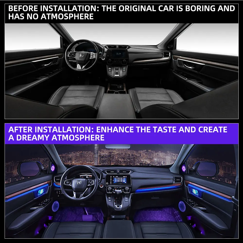 Автомобильное окружающее освещение RBG 64-цветное акриловое светодиодное окружающее освещение для автомобиля. Волоконно-оптическое украшение интерьера. Атмосферная лампа 18 в 1 светодиодная лампа.