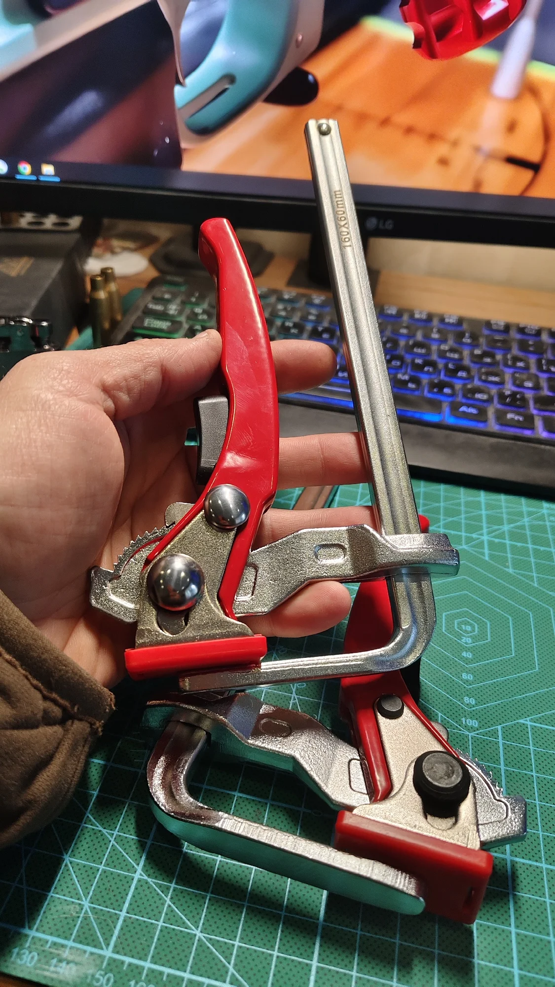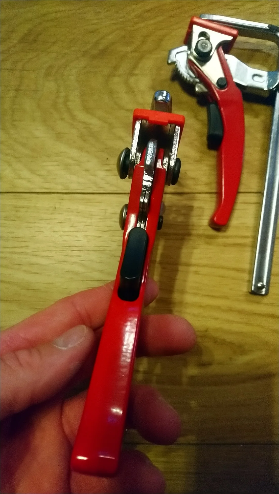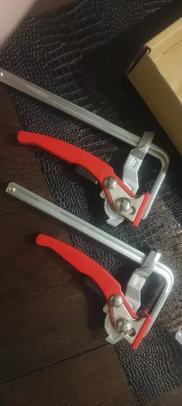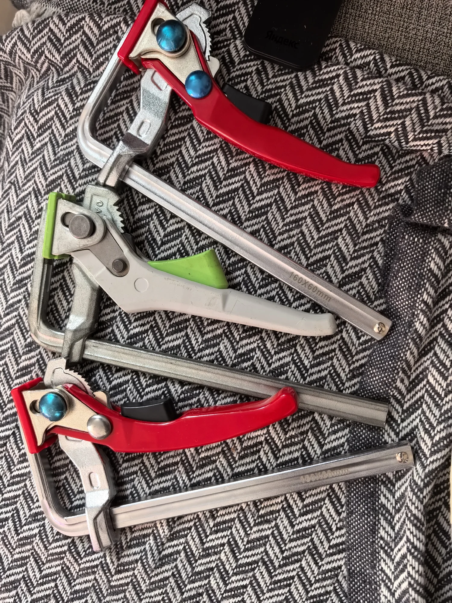 Струбцины очень хорошие. Ручки из силумина, для рычага сойдёт. Для шины макита отлично подходят. Но вот в зоне прилегания металлическая часть не доходит на 1см до площадки. В карточке товара же показано как должно быть. Хотел их ещё использовать как обычные, добавив им пластиковые накладки для таких струбцин. Но теперь нужно проверять, как на это повлияет.