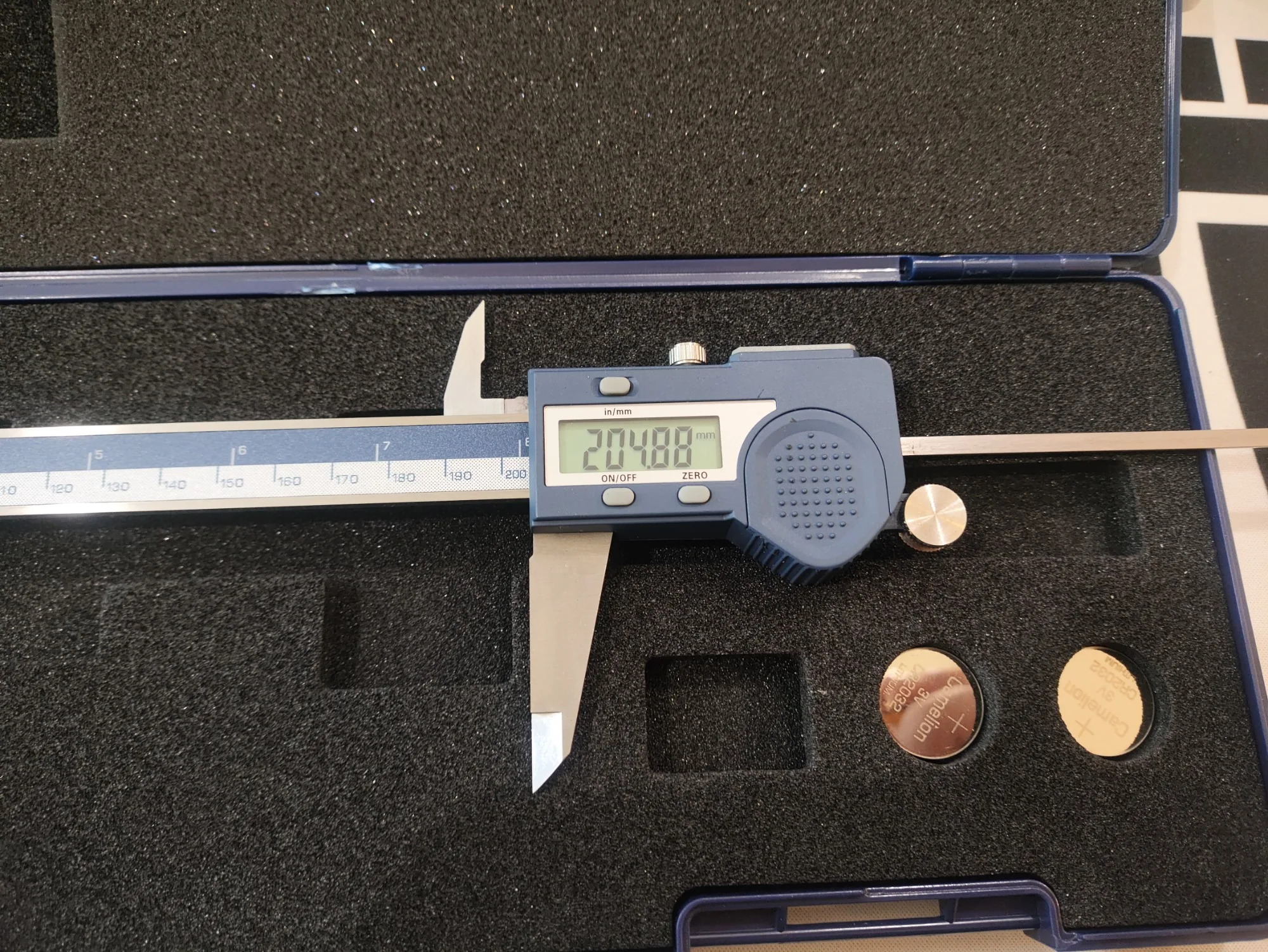 Бюджетный штангенциркуль. Много лет пользовался старой моделью, но понадобилась ещё одна и желательно побольше. Взял эту на 200мм. Качество кейса стало лучше, а вот качество изготовления самого микрометра, по сравнению со старым стало хуже. Есть небольшие люфты и голова двигается слишком свободно. По измерениям - завышает на 1-2 сотки по сравнению со старым штангелем и поверенным микрометром. В целом, для простых задач - пойдёт, но несколько разочарован.