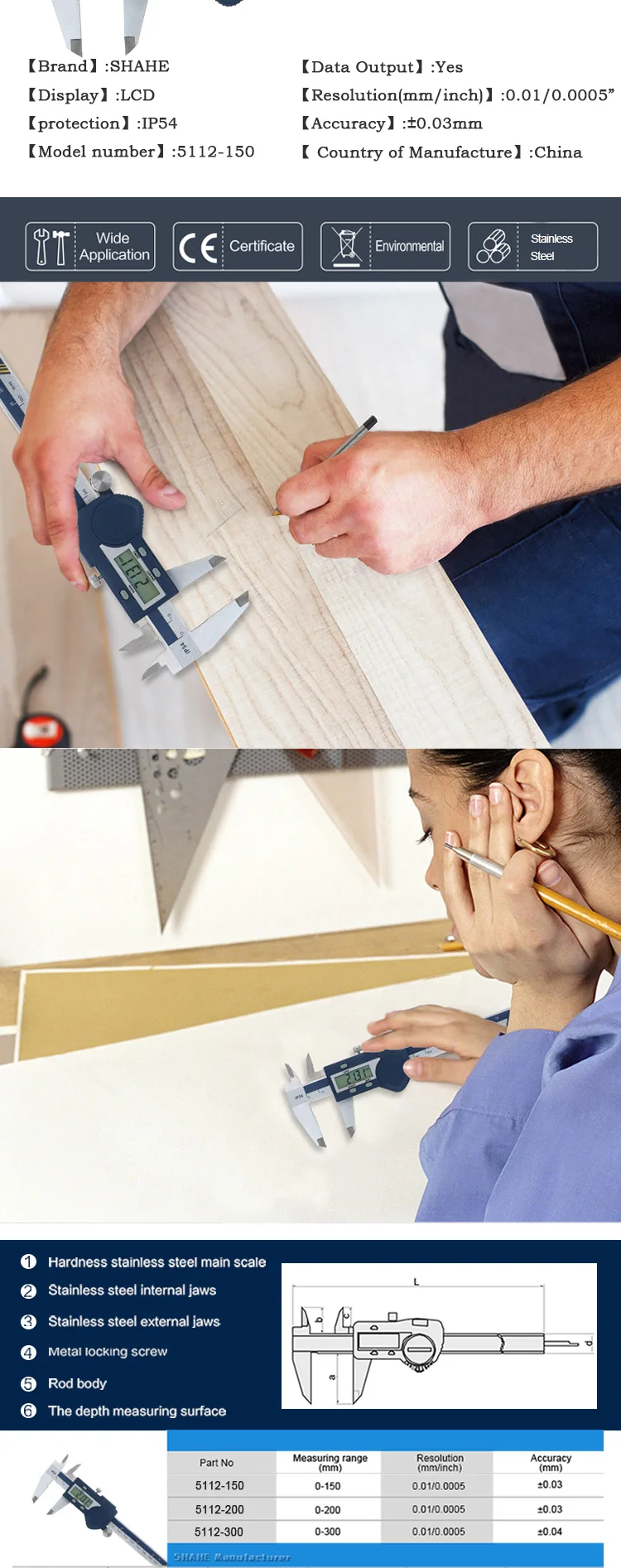 Тип: SHAHE IP54 Цифровой штангенциркуль 5112