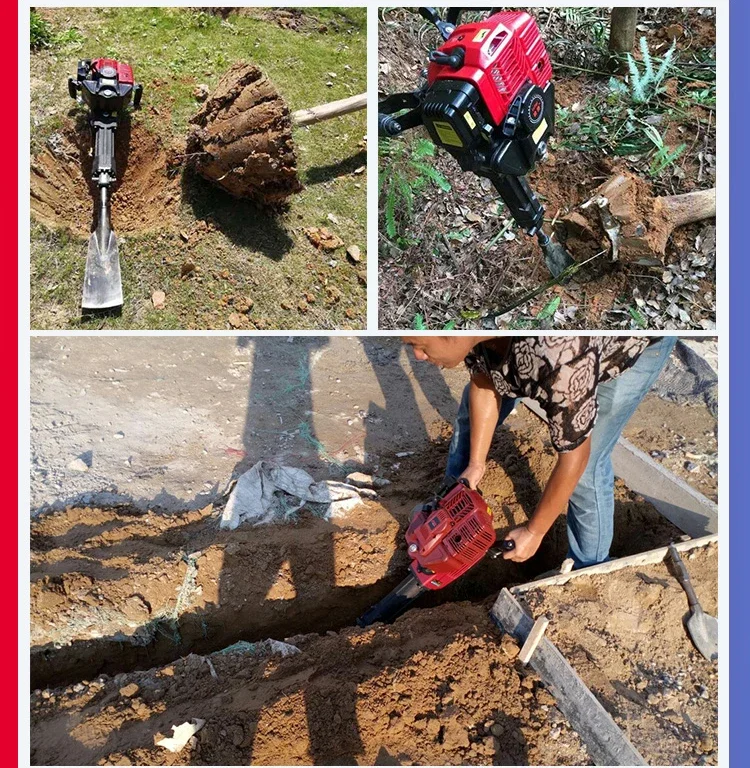 Многофункциональный в одном, можно разбить камень, сломать корни деревьев, нажимать, с различными инструментами для использования, более эффективен.Новый тип лопаты для копания деревьев.Корни деревьев легко сломать.
