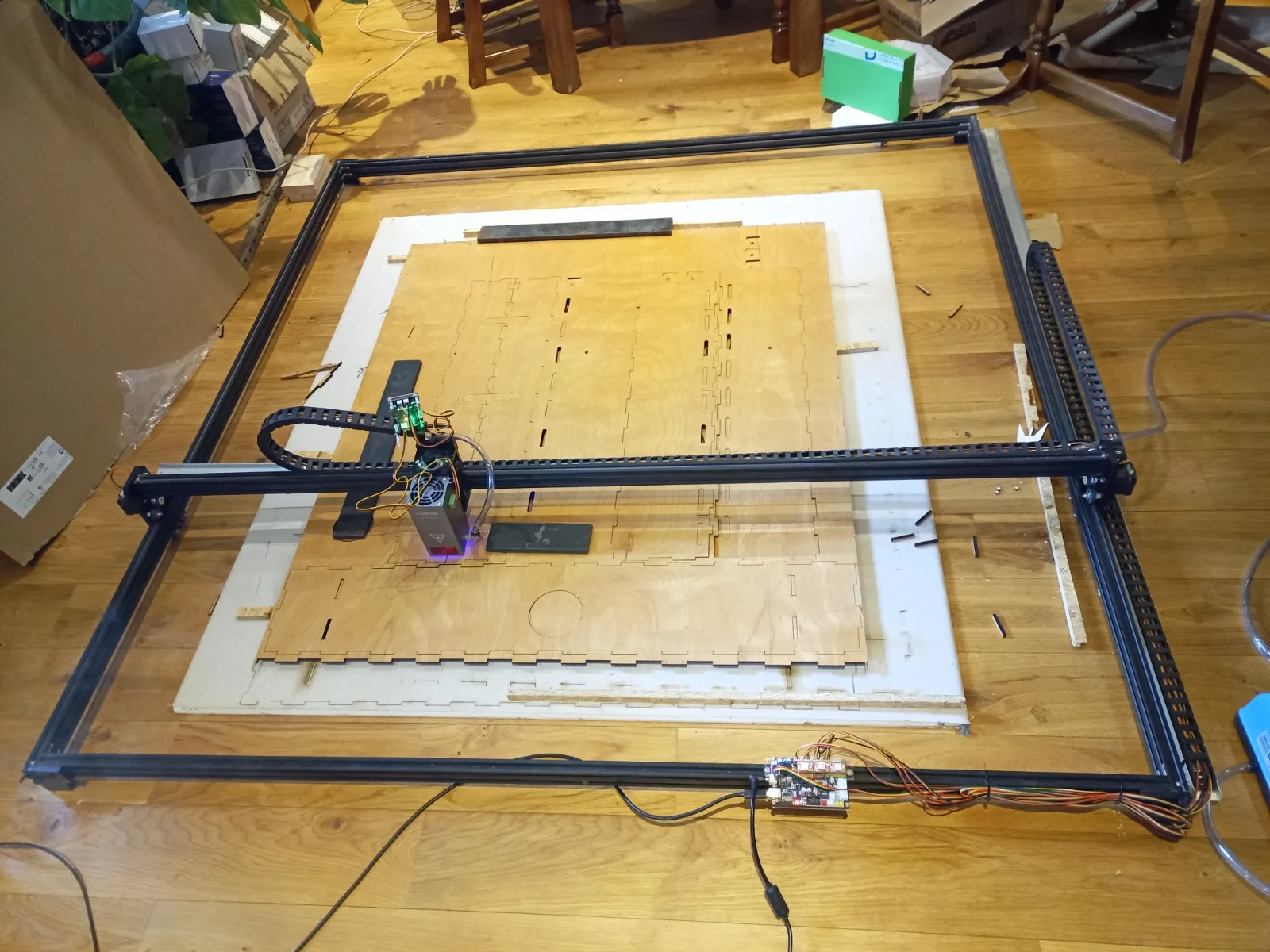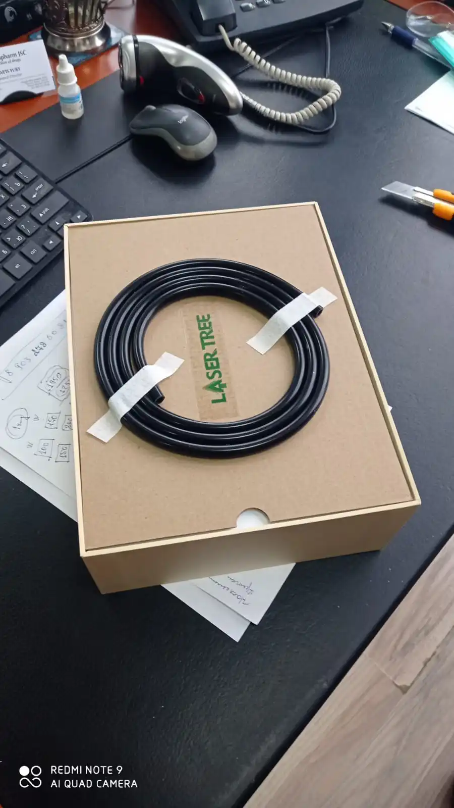 Купил этот мощный лазер с набором по скидке за 28 593,81 ₽. Упакован надежно и был доставлен без повреждений. Подключил без всяких проблем через адаптер к ЧПУ (GRBL) и блоку питания 24 Вольт, которые идут в комплекте. Лазер нормально и безо всяких проблем заработал. Проверял работоспособность "вручную", не закрепляя на каретку ЧПУ. Мощность регулировал кнопкой "Fire" (до 20%) в проге Light Burn, соблюдая все правиле работы с лазером - защитные очки и перчатки. Что я Вам скажу, на 20% мощности прожигает 3 мм фанеру из липы как "нож масло". В то же время, расфокусированный луч (1% мощности) содержит четыре параллельные полосы, по-видимому, от четырех встроенных лазерных излучателей. Такая вот особенность этого составного лазера. Выкладываю рисунок этого расфокусированного луча на расстоянии около 4 метров. Вообще, этот лазер рекомендую к покупке, если позволяет бюджет.