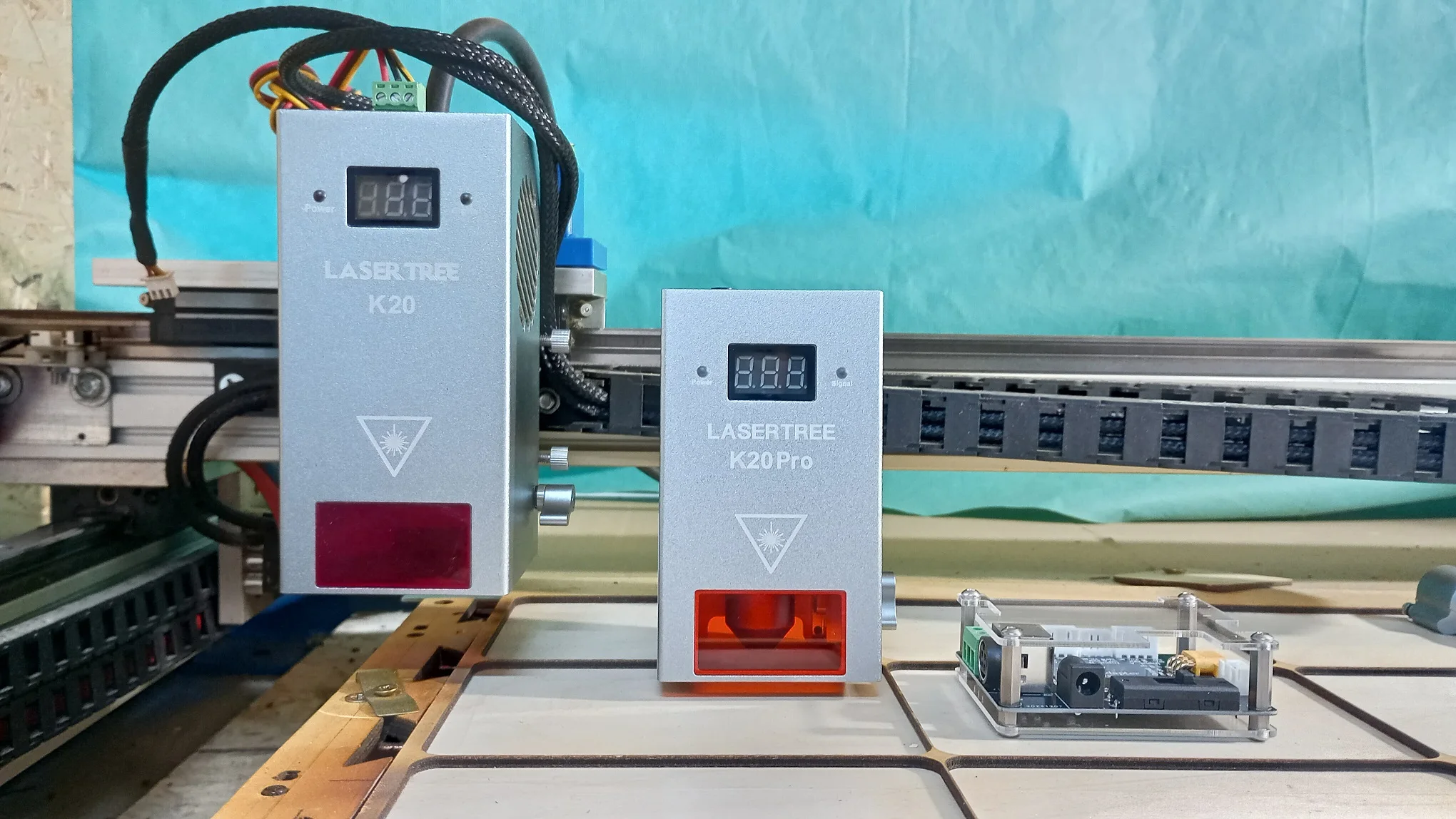 LaserTree K20 это настоящий модуль лазерной гравировки и резки оптической мощности мощностью 18 22 Вт.Он использует технологию сжатия луча для объединения 4 лазерных диодов мощностью 5 Вт в мощный лазерный луч мощностью 20 Вт.