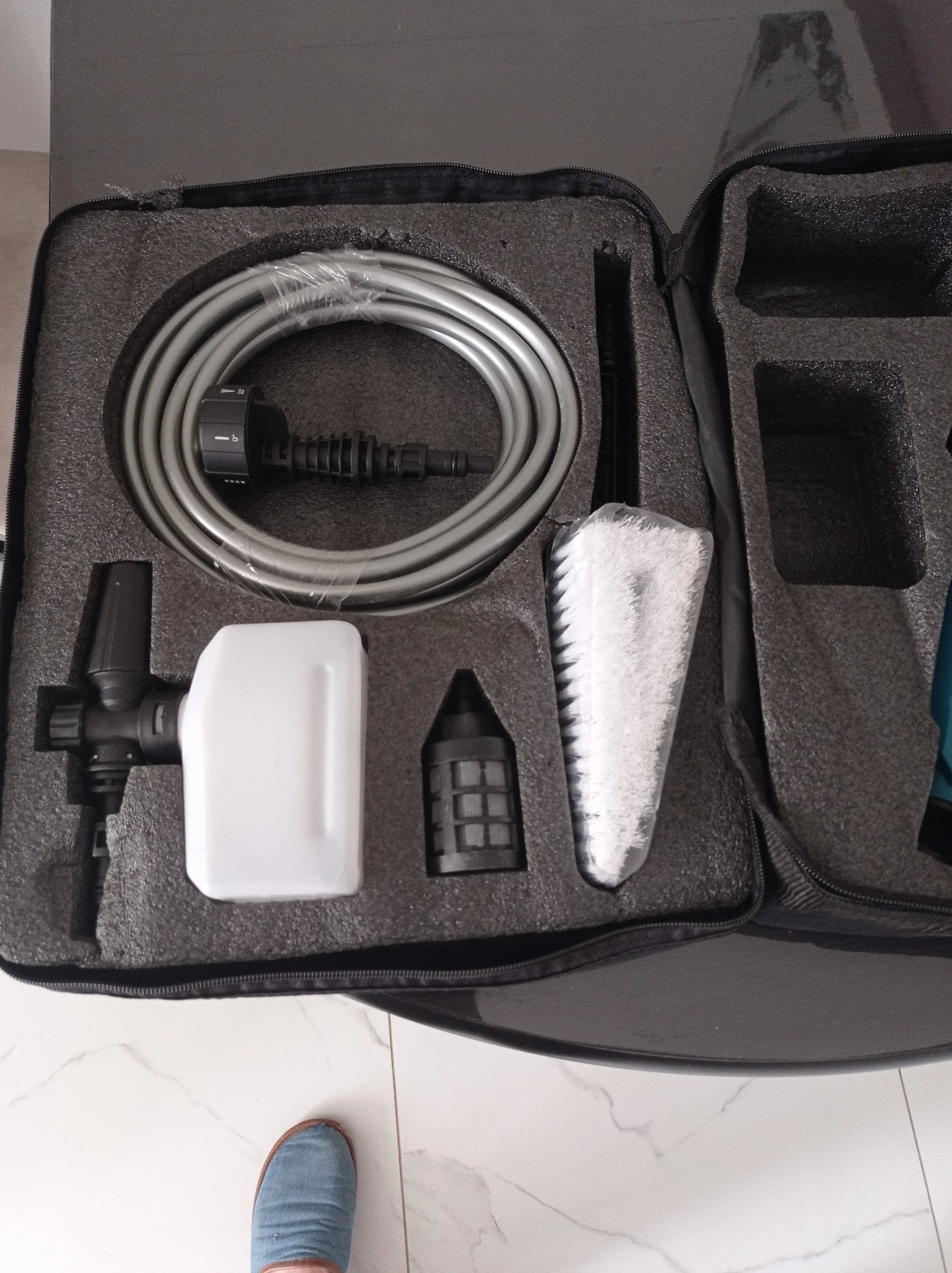 Упаковка и товар целёхоньки.Комплект соответствует заявленному.Мойка рабочая.Смыть неприсохшую грязь-самое то.С "ядрёной" пеной,можно и засохшую.За такие деньги,наверное, нет конкурентов.Пусть и игрушка,но полезная.Мне нравится.Благодарность продавцу.👍