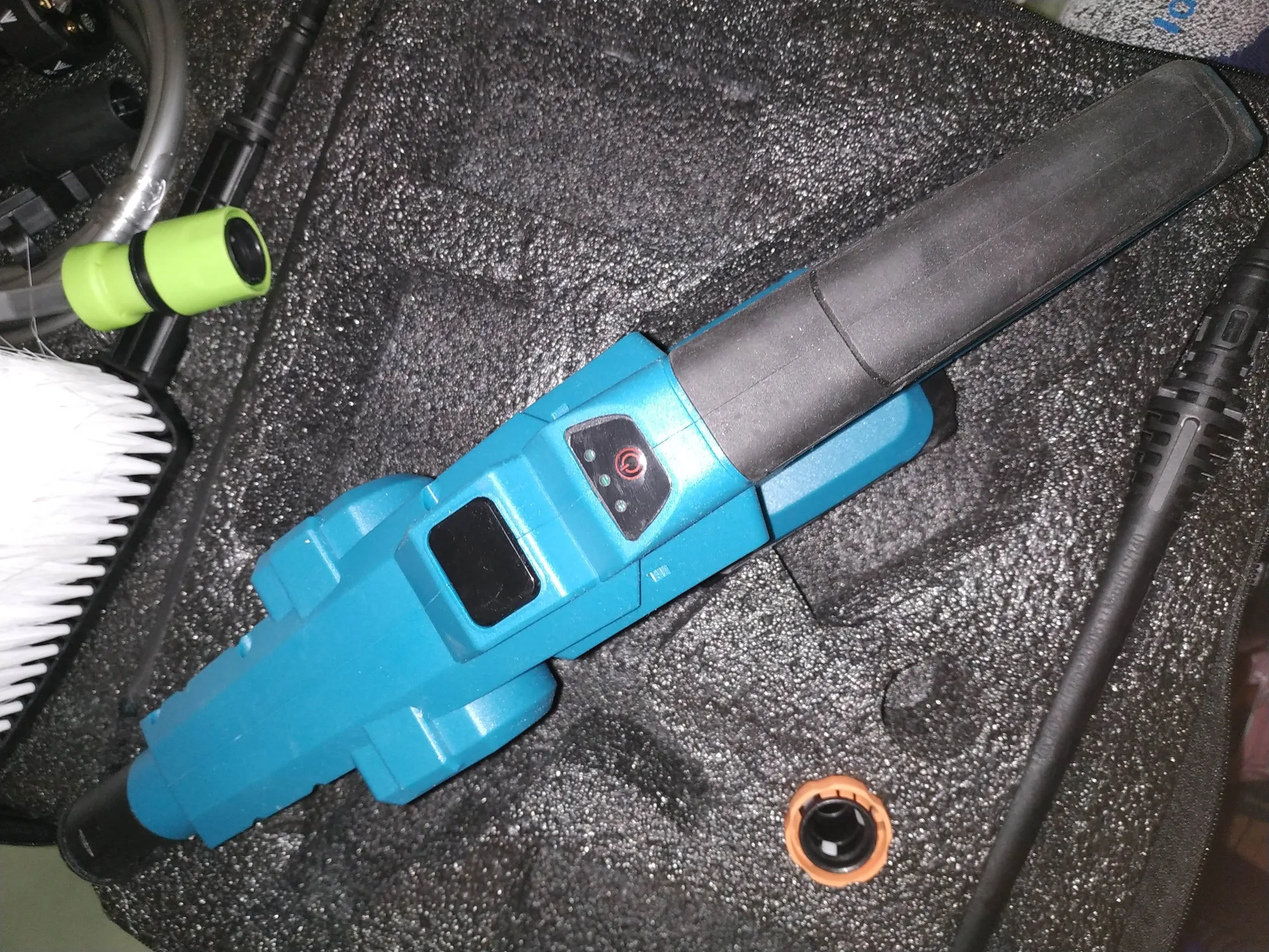 1. доставка очень быстрая. Товар был отправлен без задержек. 2. Продавец надежный. На вопросы отвечает, проблемы решает. 3. Мойка очень понравилась. Выбрал на основании видео обзора ИзиТулз. Блогер прав, что такой хват как у этой мойки более удобный, чем пистолетный. Попробовал в ванной. Так что это тест а не реальное использование. 4. Протестировал все насадки. И, да, спасибо ИзиТулз, угловая насадка с поворотом в любое место просто супер. Направляет струю в любую сторону. 5. Пеногенератор и щетку не тестил. Есть обзоры, и по ним все работает. 6. Есть 3 скорости. Выбираются кнопками. кнопки в удобном расположении. См фото. Можно менять скорости в процессе. Непринужденно и одной рукой. 7. Дисплей процента заряда светит ярко. виден ли будет на солнце хз. Вроде бесполезен, хотя, должен показать, что скоро праздник закончится сменой батареи или процессом заряда оной. 8. ОЧЕНЬ хорошо сделано, что впускной патрубок разработан под распространенный разъем от садовых шлангов. См. Оранжевую и зеленую насадку. Так что сам фитинг для нужного шланга легко можно найти в любом садовом магазине. 9. сеточка металлическая вроде бы нержавейка. В обзорах видел, что сетка пластик, а мне пришла металлическая. Имеет смысл сделать дополнительный фильтр, если вода не очень чистая. Дольше прослужит. 10. Внутрь не забирался. 11. Поставляется в сумке. В сумке ложемент. смотри фото. Сумка удобна если возить в машине или для аккуратистов, кто не часто пользуется. Сумка с ремнем Я все насадки и мойку сразу вывалил в ведро. Что бы мести на место мойки сразу все и так же быстро все убрать. 12. В ложементе есть места под 2 батареи и зарядное устройство. 13. Батареи типа макита подошли. Брал без батарей. На фото моя батарея в 2 ряда (10 аккумуляторных элементов) 14. Выводы: Очень понравилось исполнение. Спасибо продавцу и производителю за хороший товар. Надеюсь, прослужит долго.8673 u. 13 февраля 2025