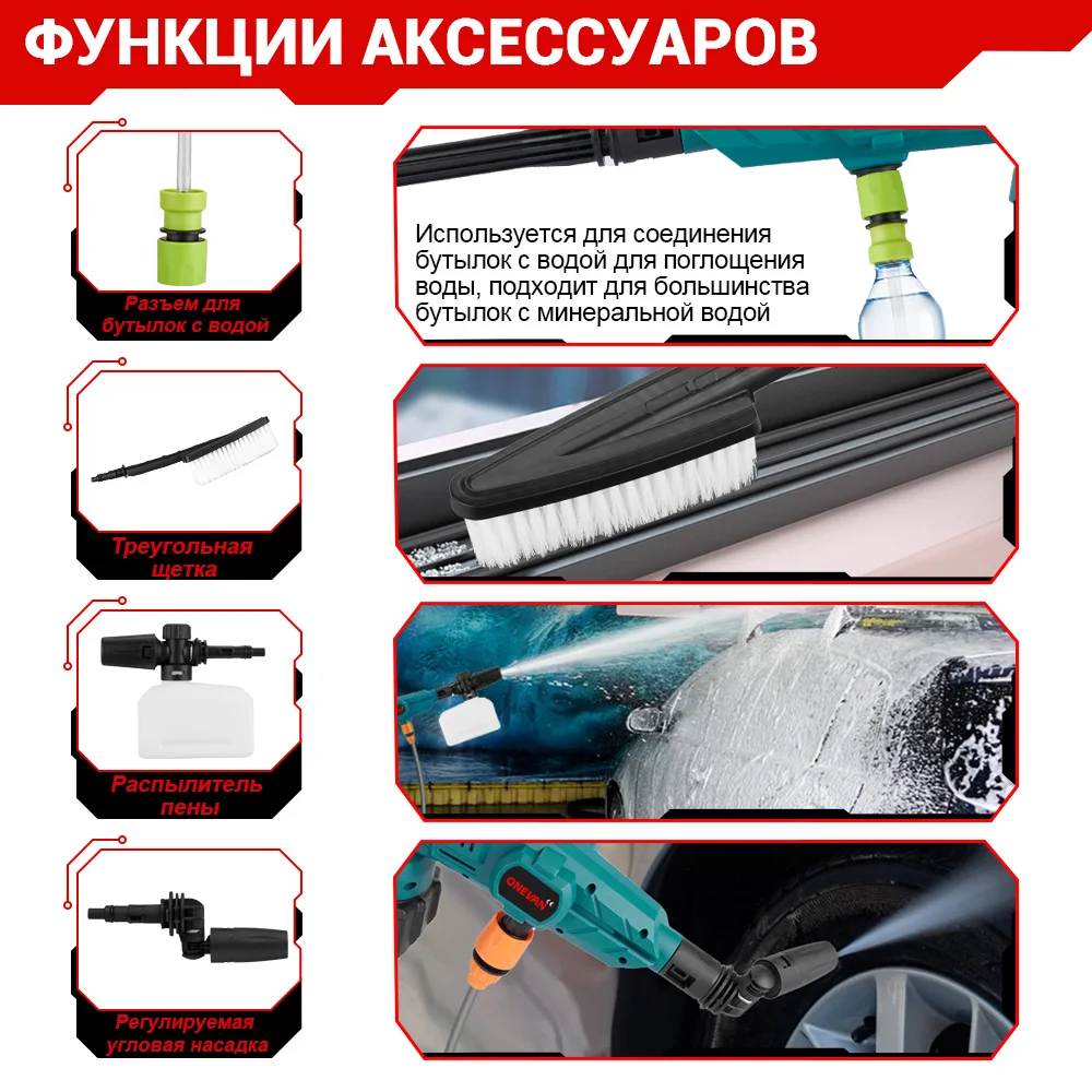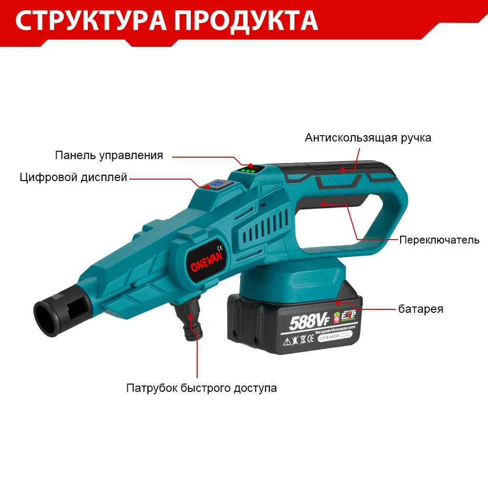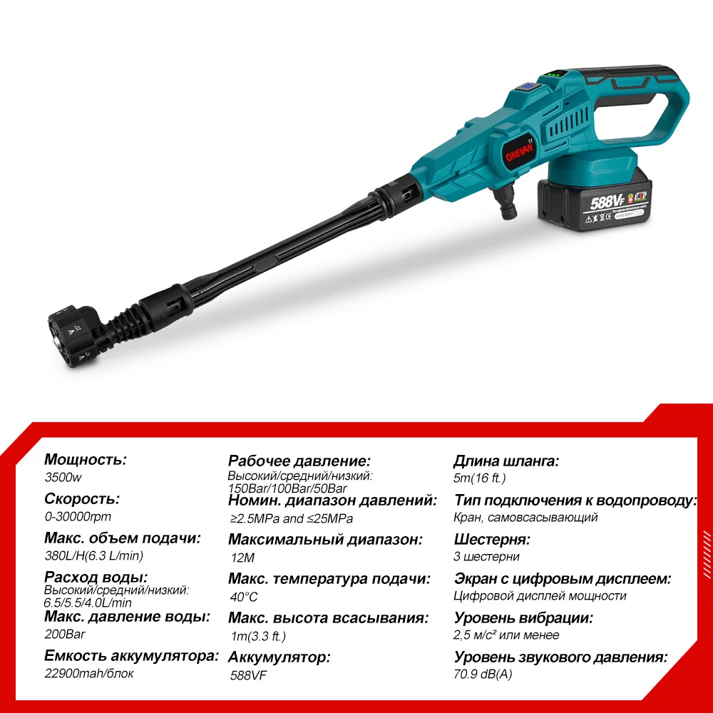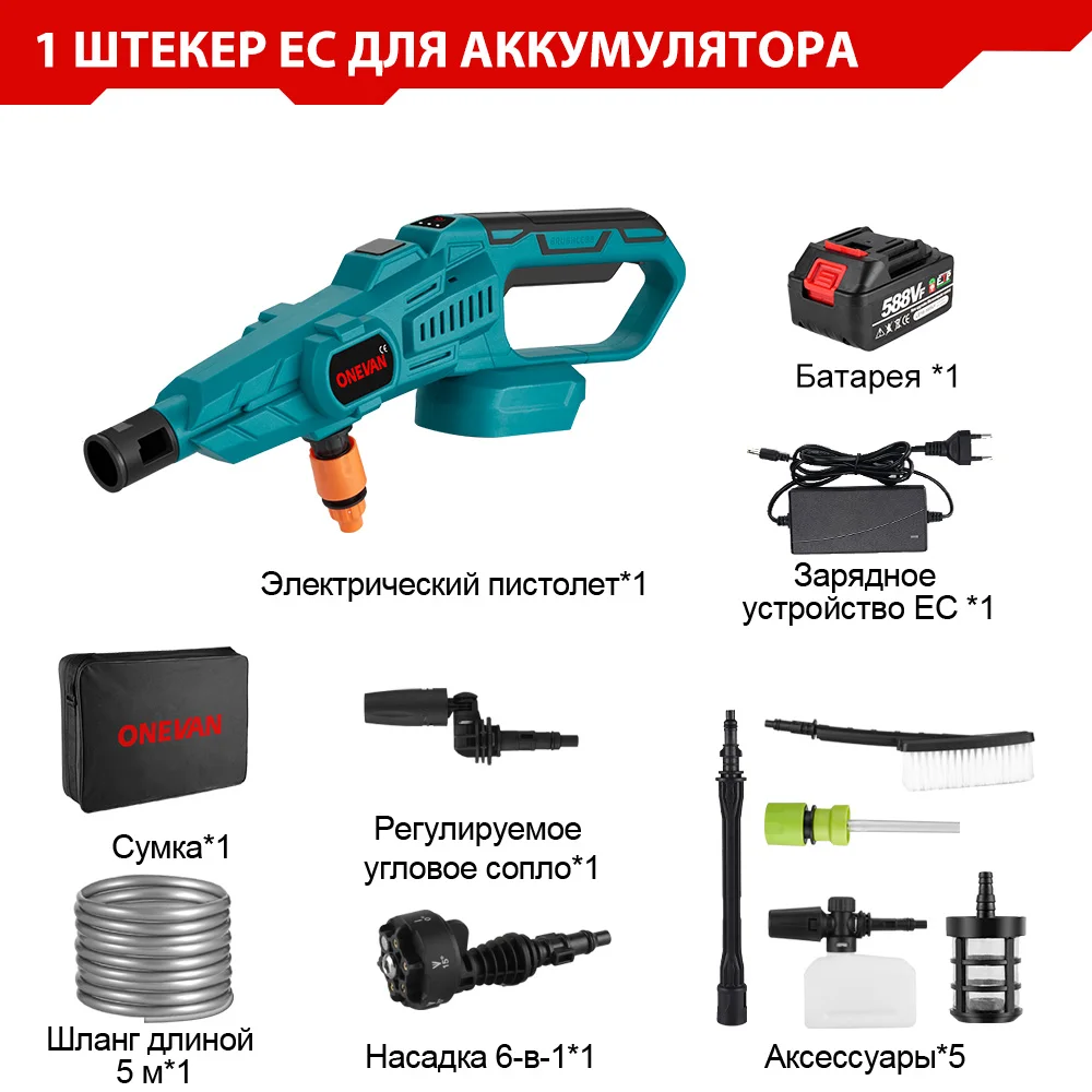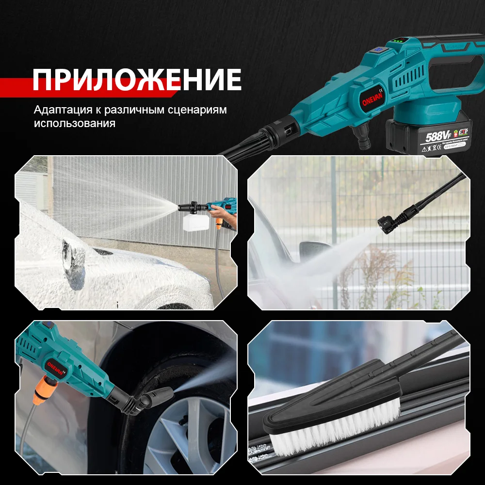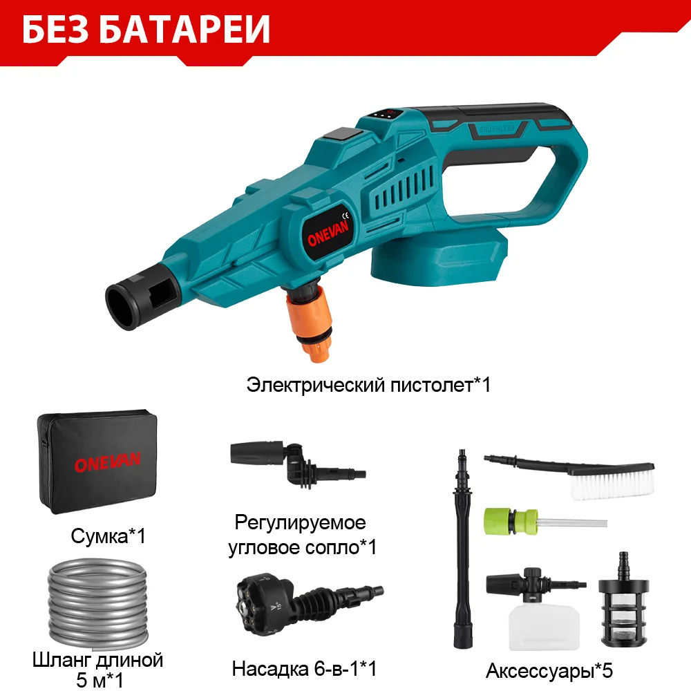 ONEVAN 200Bar 3500W Бесщеточный пистолет высокого давления для мойки автомобилей 6-в-1 беспроводной перезаряжаемый пистолет для мойки автомобилей для аккумулятора Makita 18 В