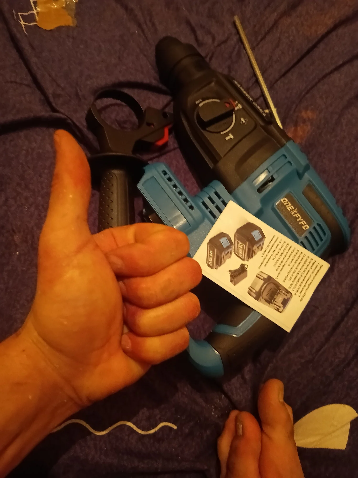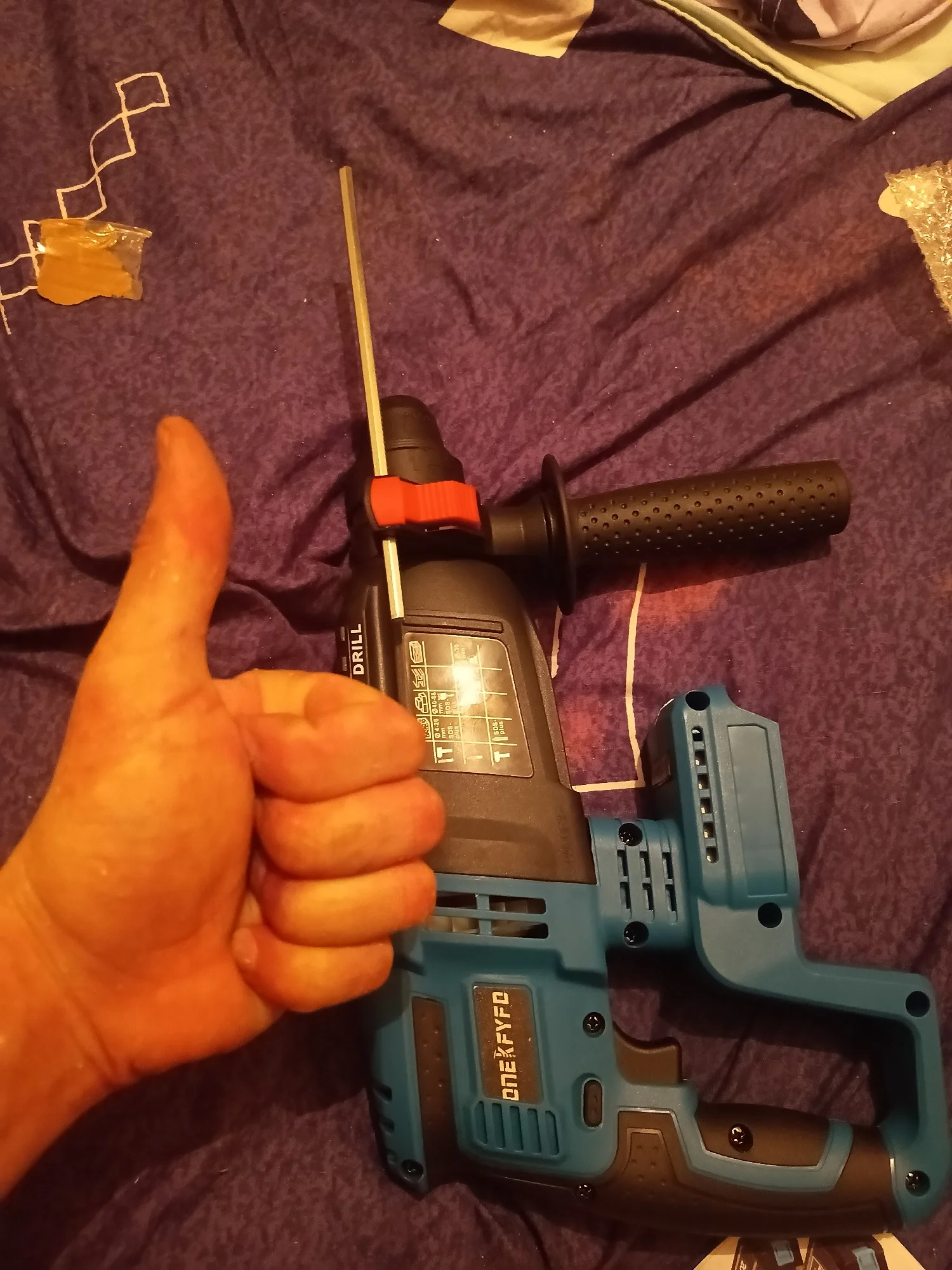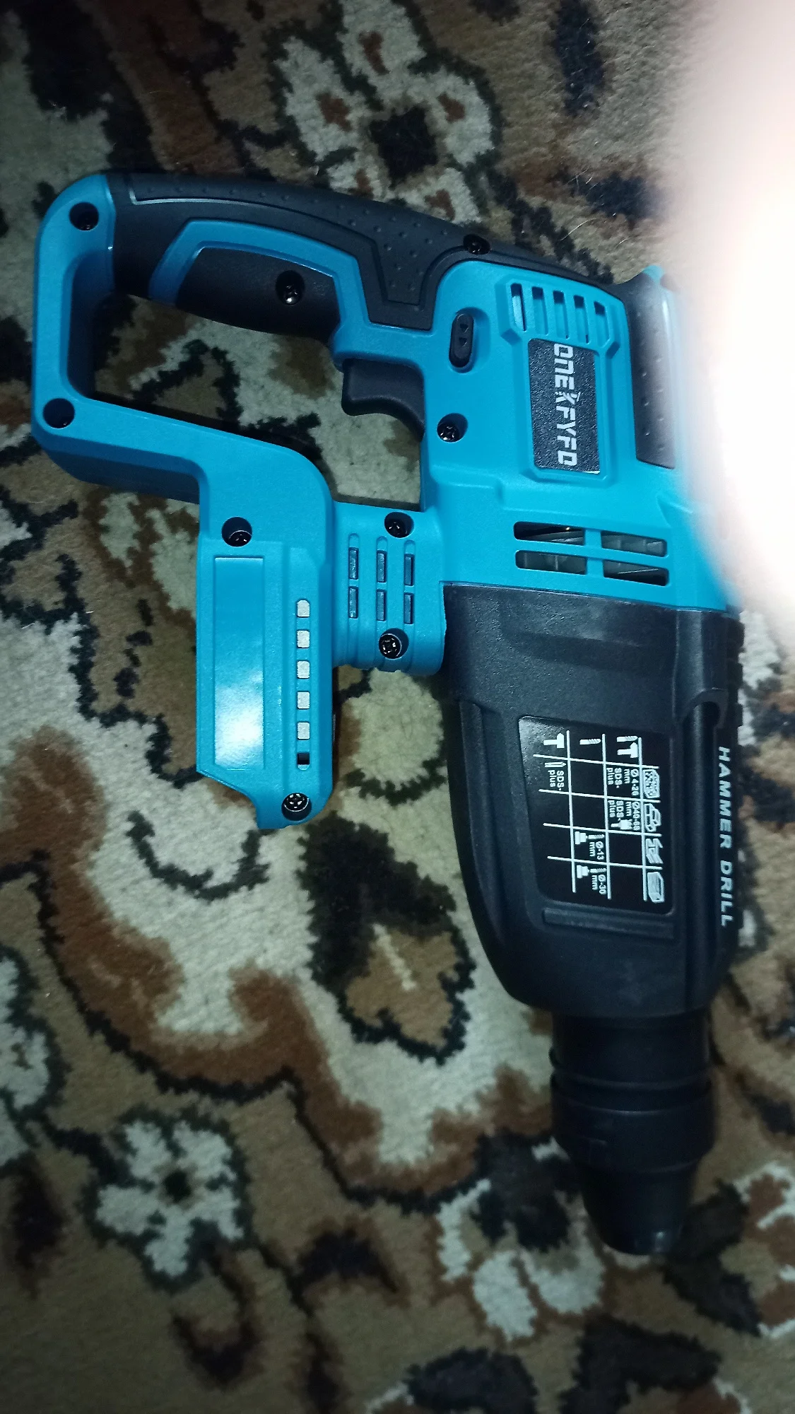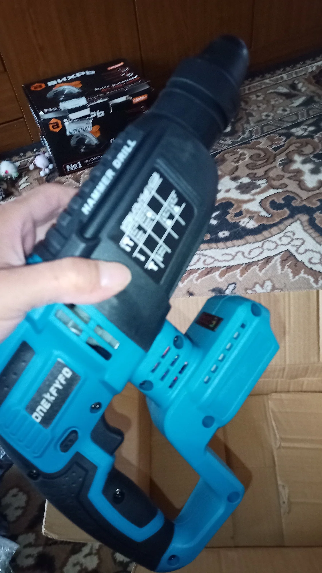 Вживую перфоратор смотрится гораздо лучше, честно, ожидал, что будет поменьше😮 Отличается от того что на картинке, но ничего, видно что перфоратор абсолютно новый. Сразу скажу- тяжелый, вес 2.425кг, с аккумулятором- 3,050кг. Так что имейте ввиду😉 Только получил, эмоции положительные! Как протестирую, обязательно дополню отзыв😎 Смело рекомендую!Амбуш Д. 3 ноября 2023