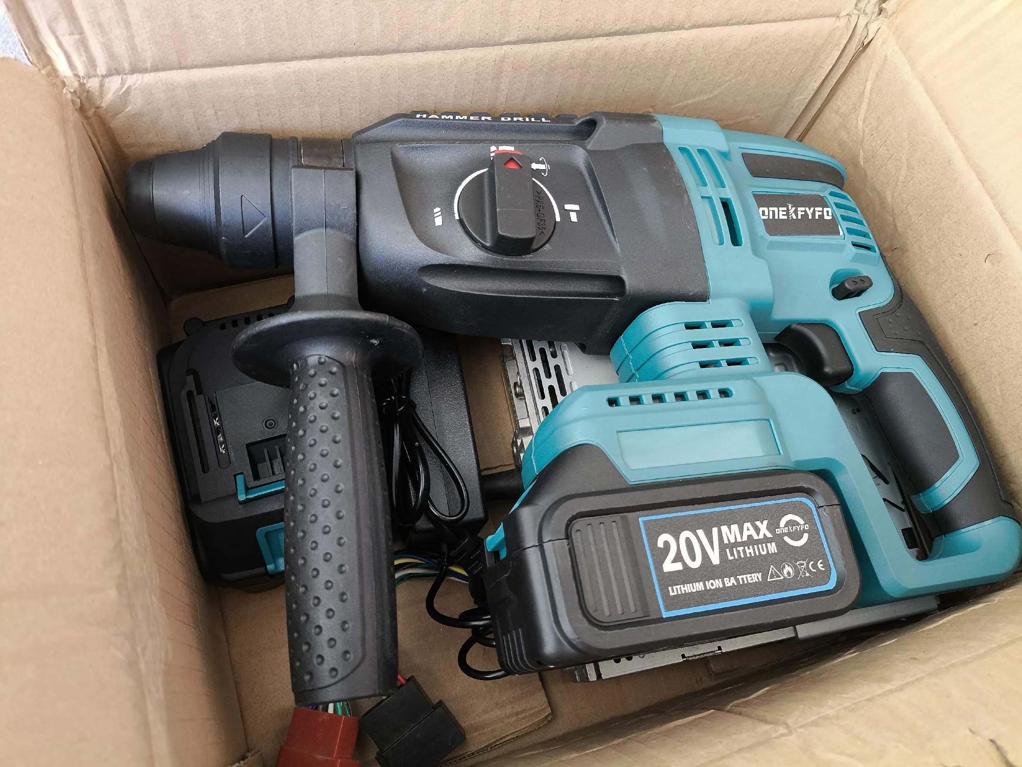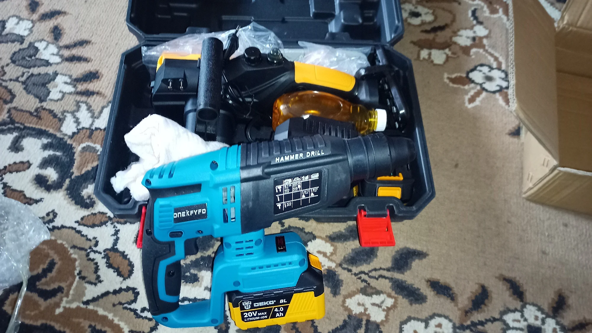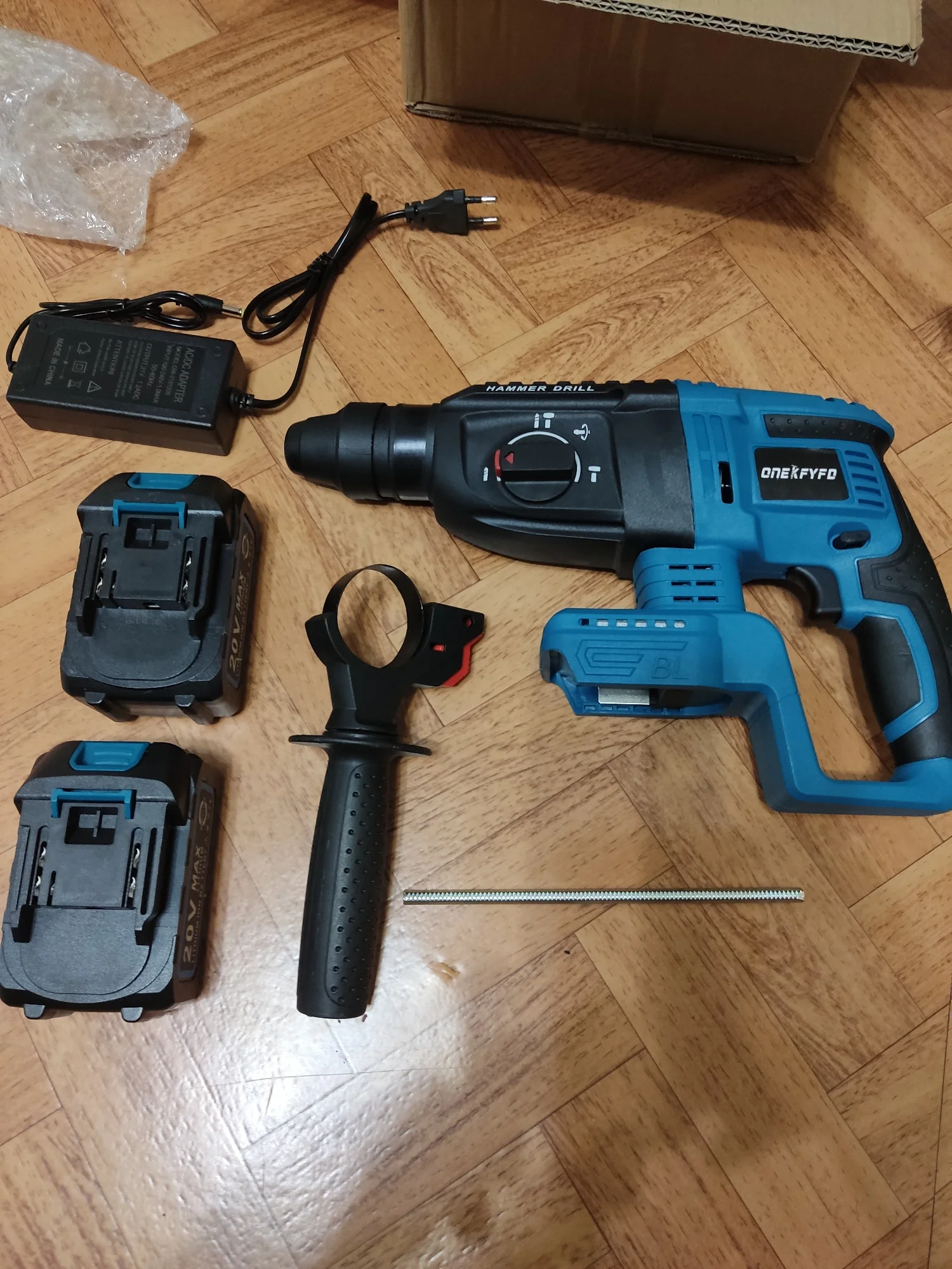 1 электрический вращающийся молоток (батарея и зарядное устройство в комплект не входят) В комплект поставки не входит зарядное устройство, убедитесь, что у вас есть подходящая батарея дома.
