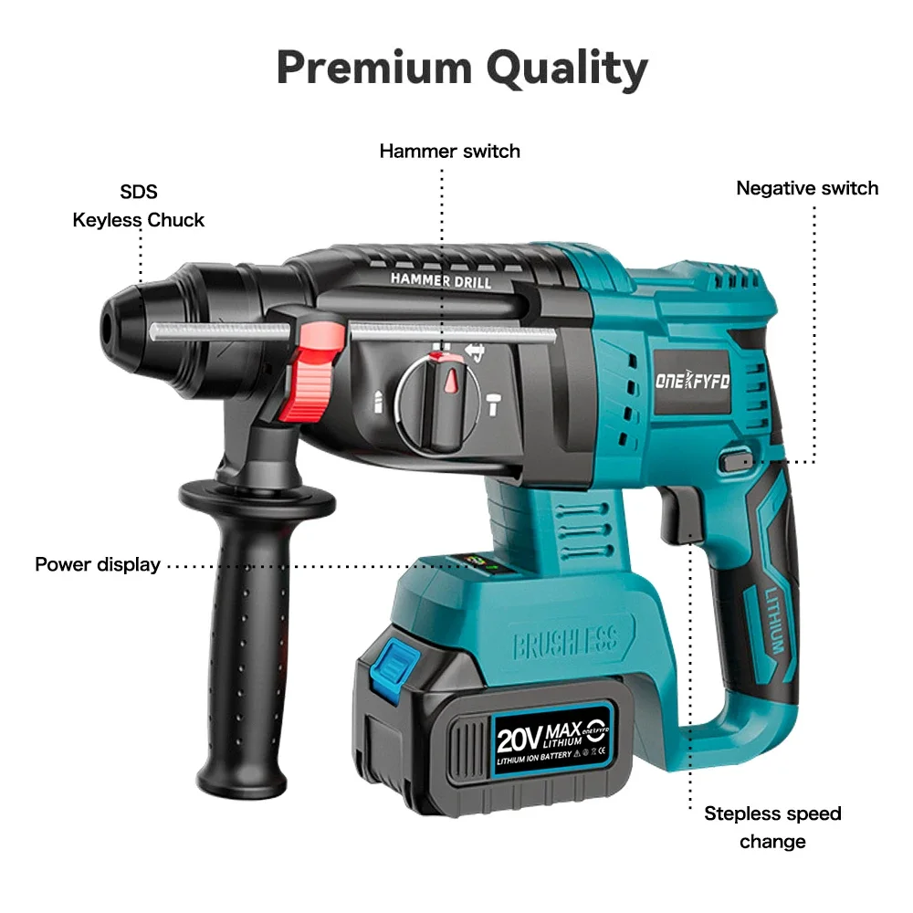 3 in 1 Brushless Impact Hammer 21V Cordless Hammer Drill FUNCTION...