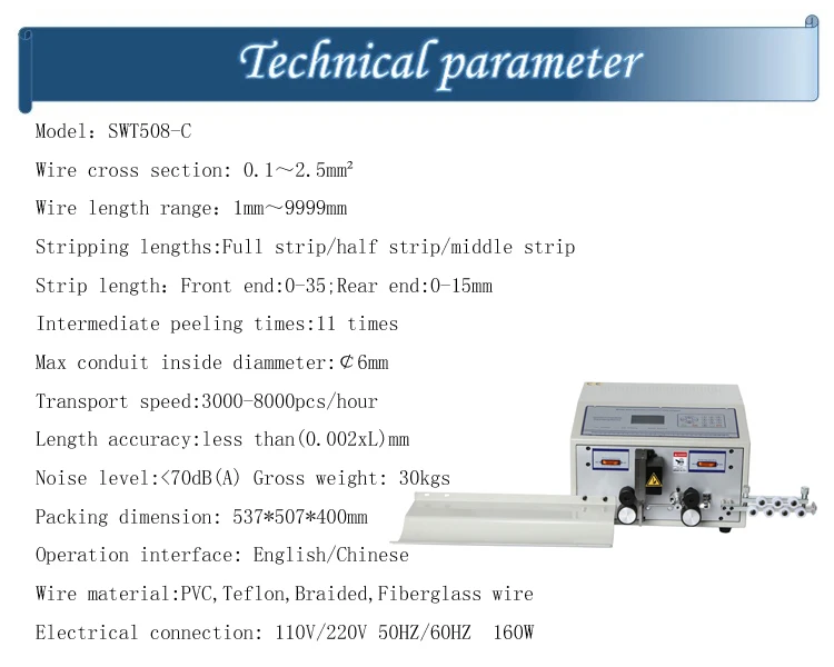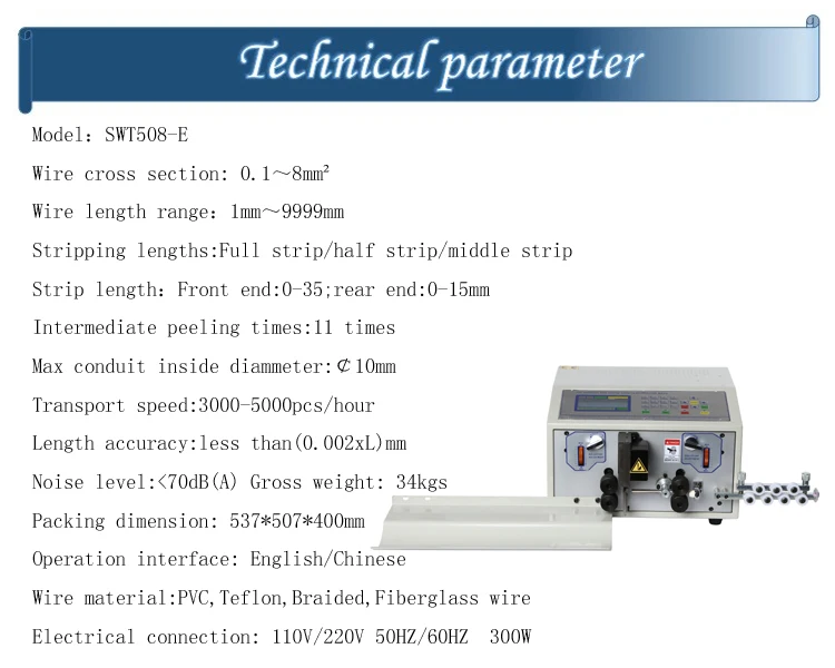 Наш продукт использовать человеко-машинный режим диалога экрана лькд, с славным возникновением, простой деятельностью, удобным обслуживанием, стабилизированным представлением, скоростью, основными особенностями точности более высокими. Длина провода может установить произвольное, Трум и параметры конца линии могут также согласно запросу клиента изменить, различная степень проводов финиша обнажая, также имеет линию высокой напряженности линии, кожух ножниц и т. Д.