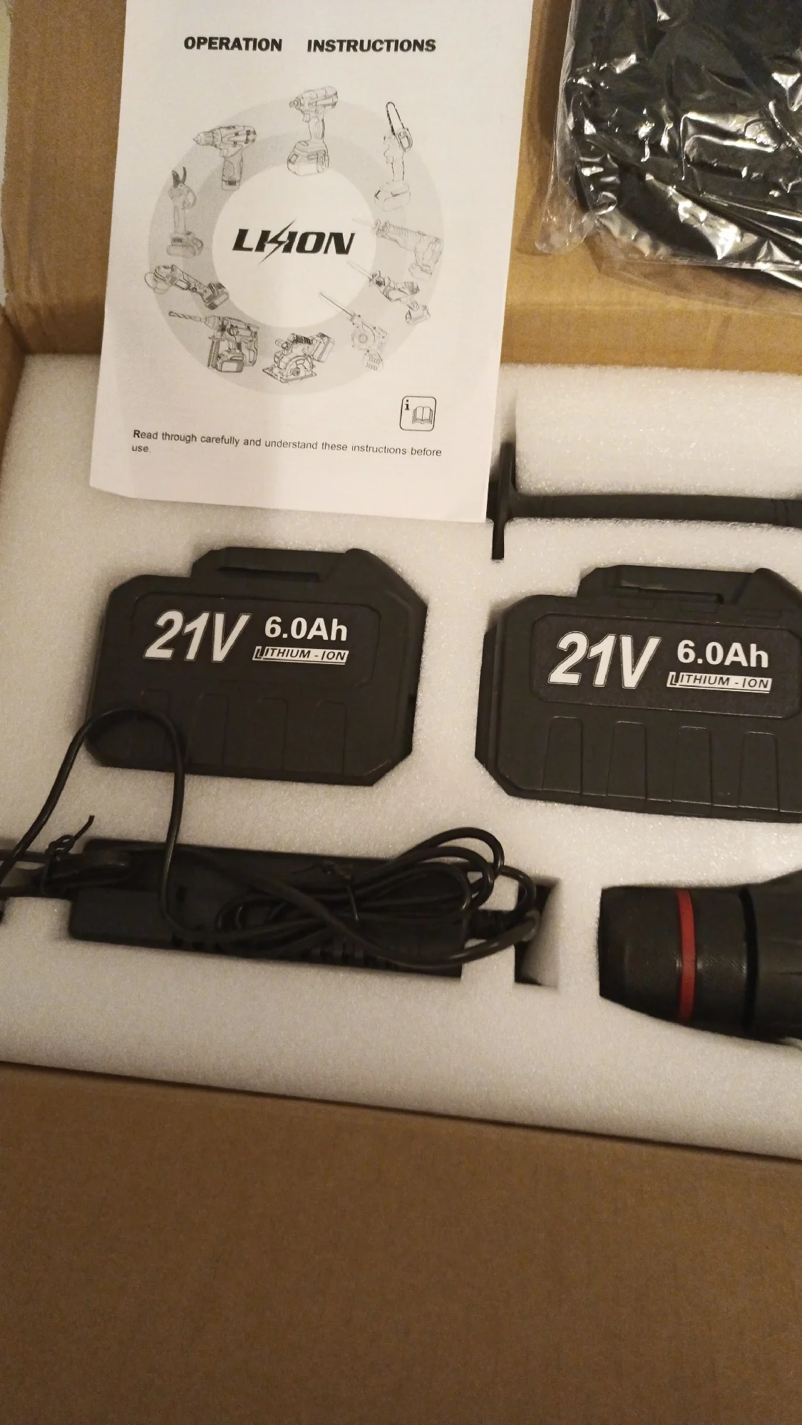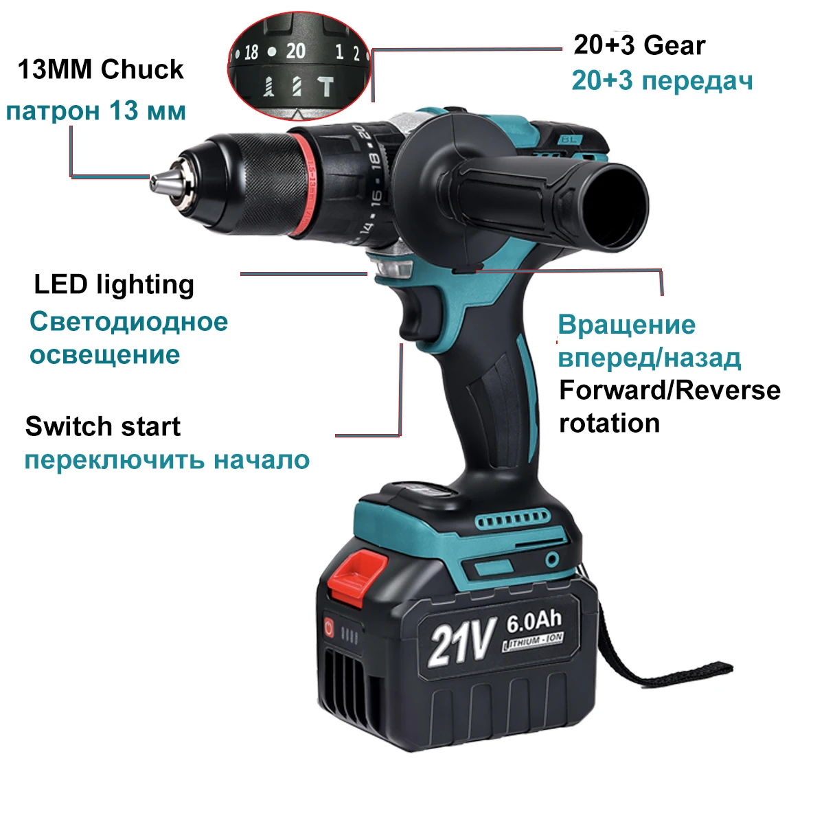 Напряжение аккумулятора: 21 В 6000 мАч (встроенный аккумулятор 18650, 15 шт., 2000 мАч)