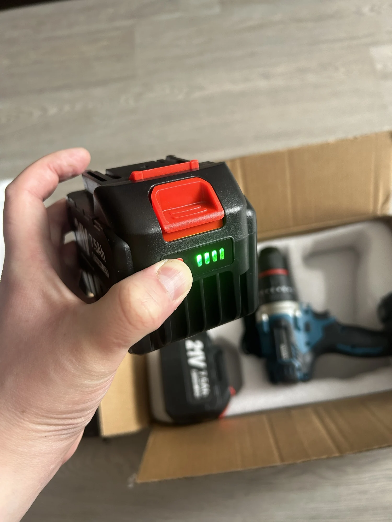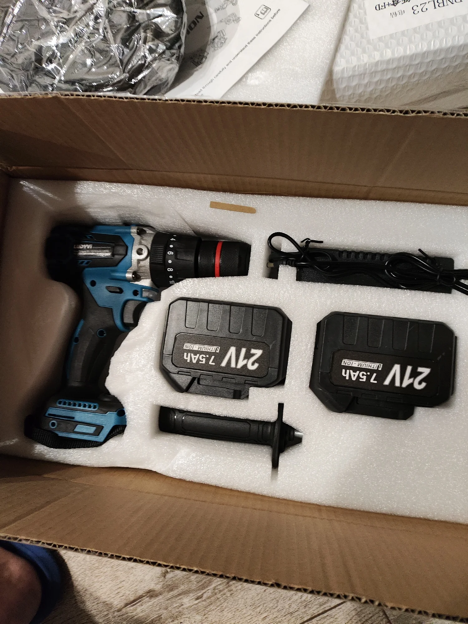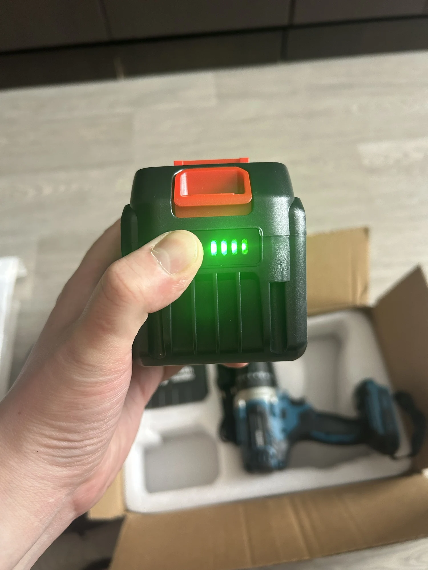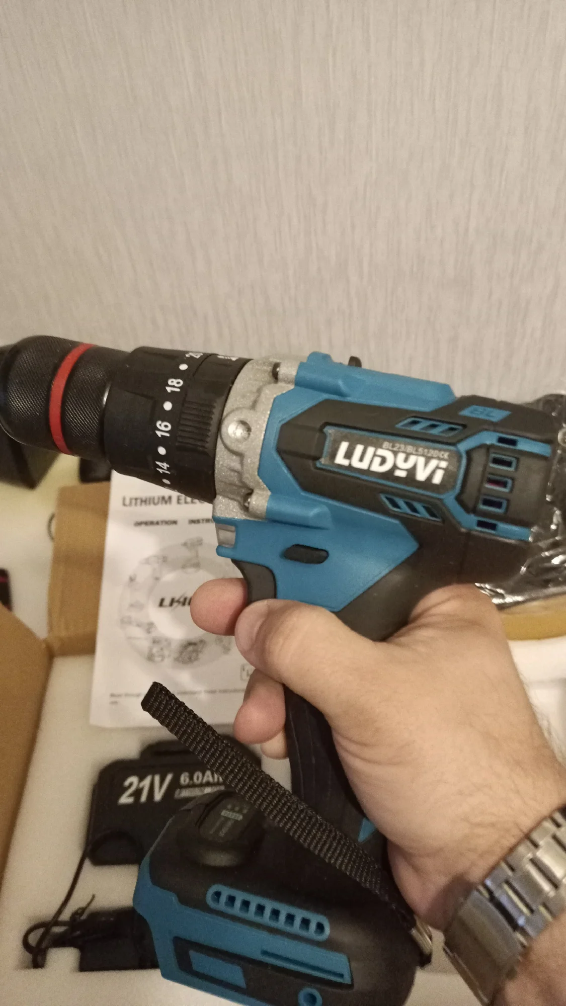 Шуроповёрт отличный, качество материалов по внешнему виду хорошее, всё в комплекте. Три режима работы: шуруповерт, сверление и в режиме перфоратора, есть подсветка светодиодом. Посмотрим как будет работать. Доставка из России быстрая (5 дней), упаковка нормальная, при доставке не повреждена. Единственный минус - на корпусе шуруповёрта с одной стороны следы влаги в виде белых пятен, из-за этого поставил 4.Игорь Анатольевич М. 13 августа 2023