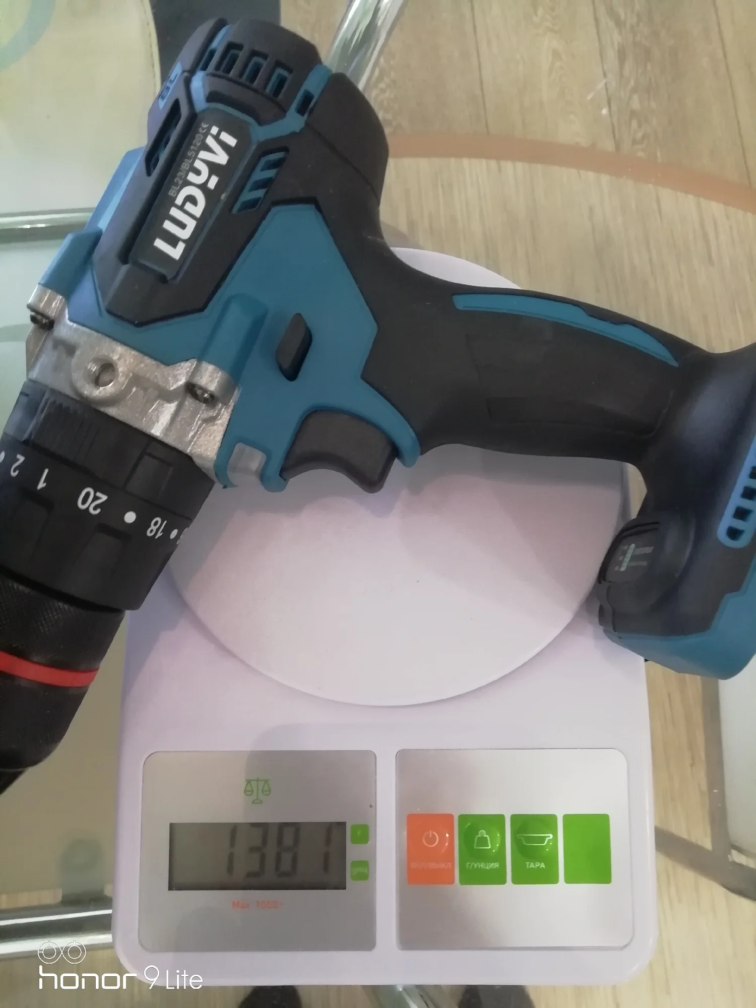 Вес электродрели: 1385 г (без аккумулятора)