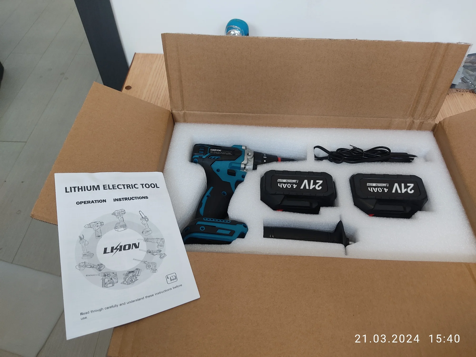 Параметры батареи: 21V 4000MAH