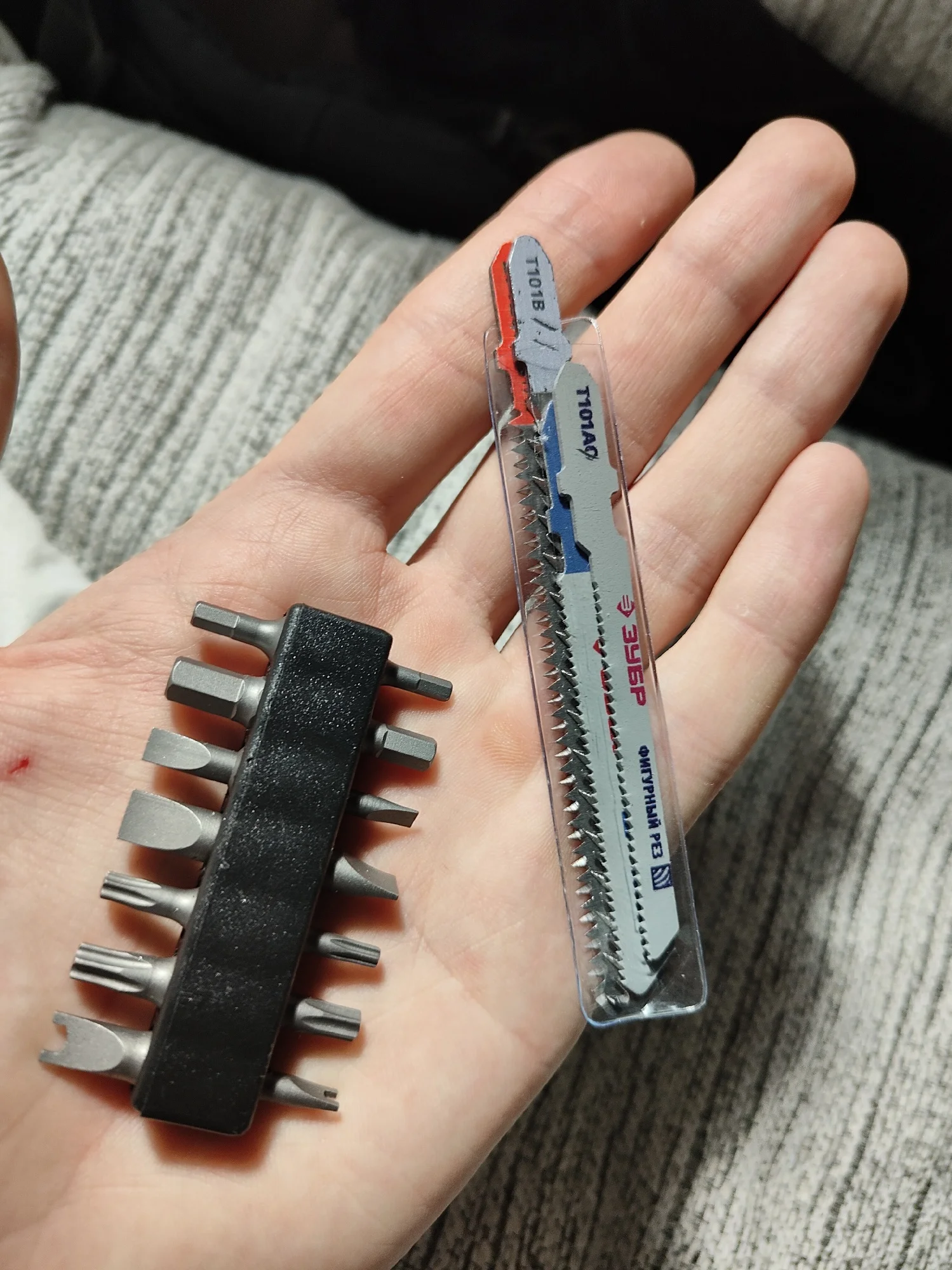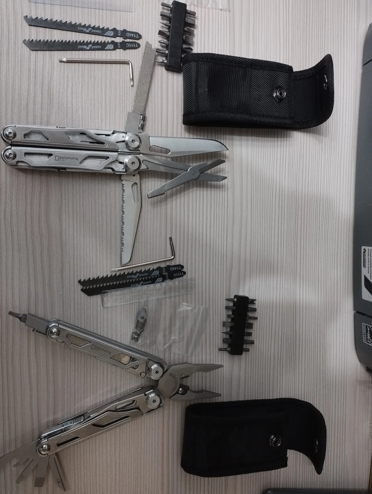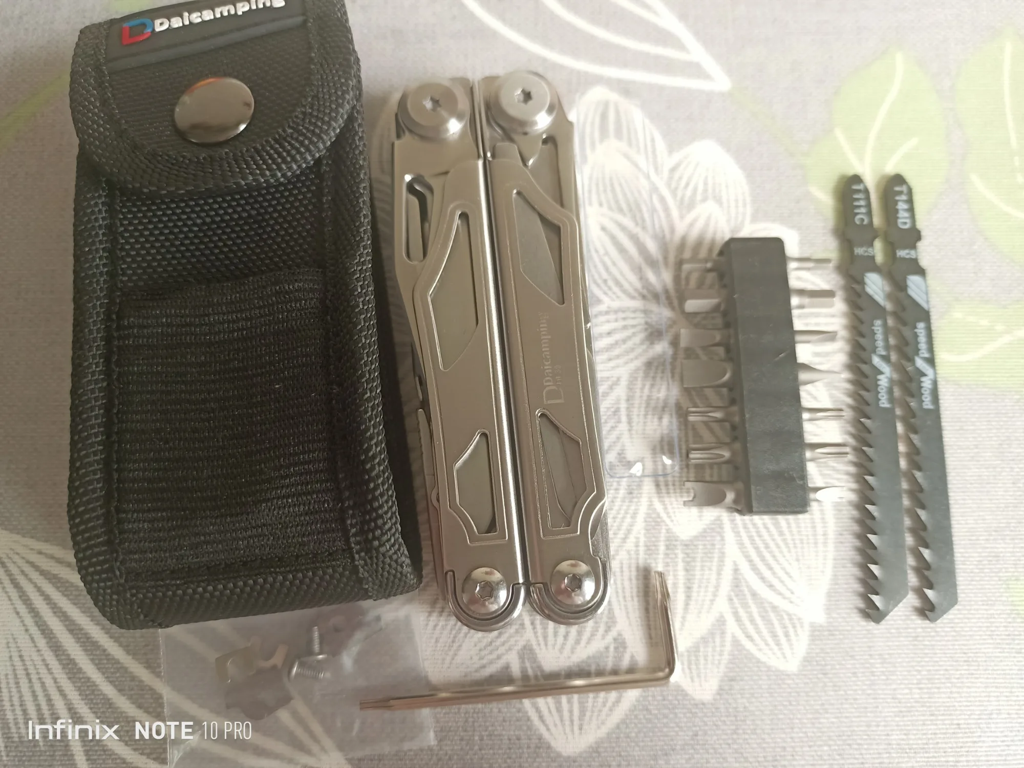 Хороший мультитул 🤓👍всё работает, лезвия - острые, биты - крепкие. Продавец выбрал свою доставку, пришло СДЕКом, на удивление быстро(Нижегородская обл.). Ключ,- для откручивания винтов сменных ножей, для откручивания винтов(для разборки(чистки)) используйте биты(в наборе). Пилки, думаю для удобства - дополню, позднее 100мм, от лобзика, так поудобнее будет, благо всё подходит. Хорошая мужская игрушка, всем советую😉