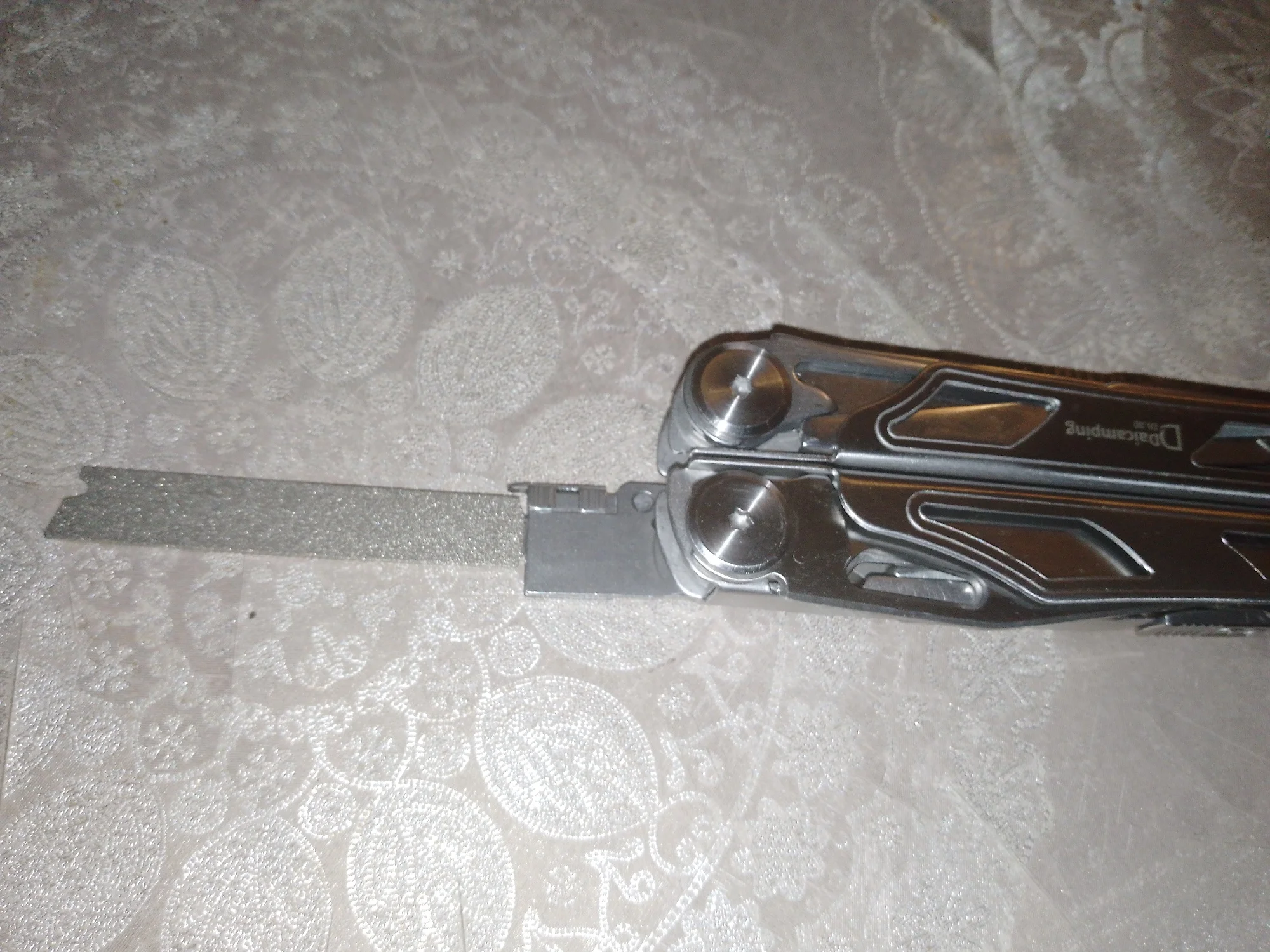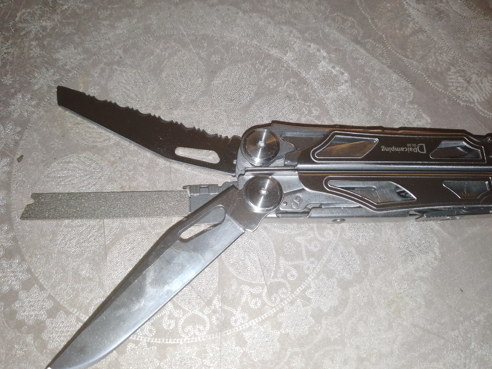 приехал заказ быстро за 3 дня,доставка в постомат пятерки мос. обл. , сведение кривоватое, обработка тоже, но за эту сумму отличный варик, нож острый-бреет волос, нужно полностью смазать-смазки нету вообще- думаю вот чем только, бита одна с шариком- не выпадает, а остальные ну так вроде держаться, ножницы- ногти стригут, пилка для ногтей подходит! пила и креплени ее - на троечку(сожет кому и пригодится ветку в 6 сантимеров спилить. Ну остальное вроде нормуль- рекомендую, берите. не пожалеете. Пригодится