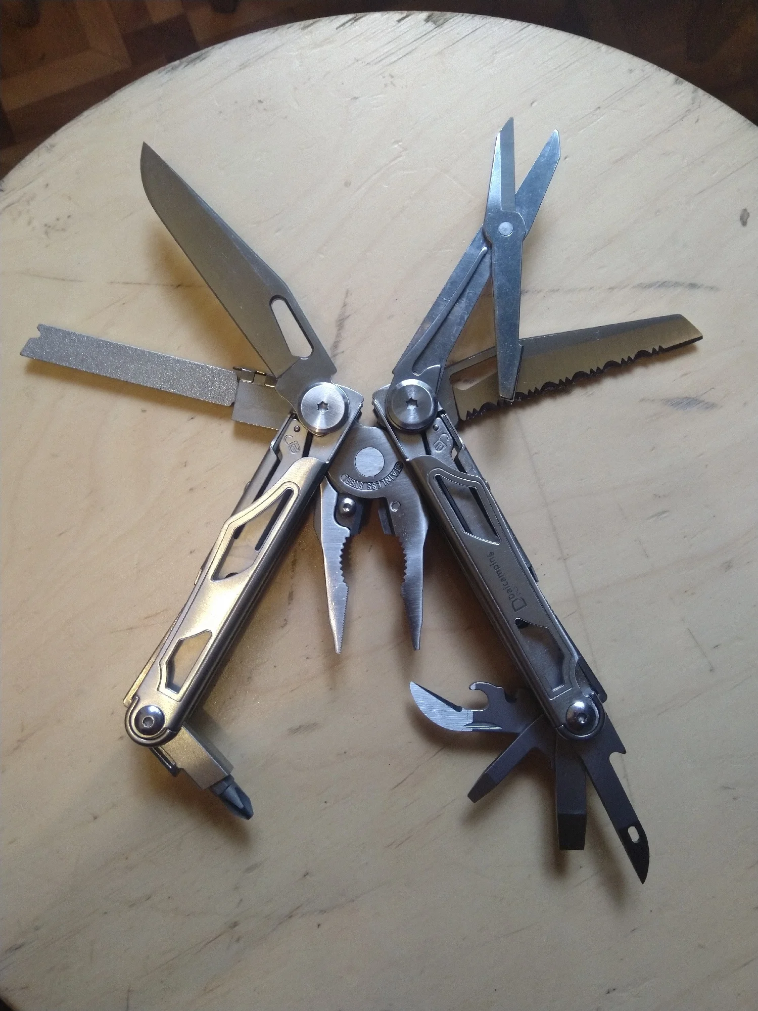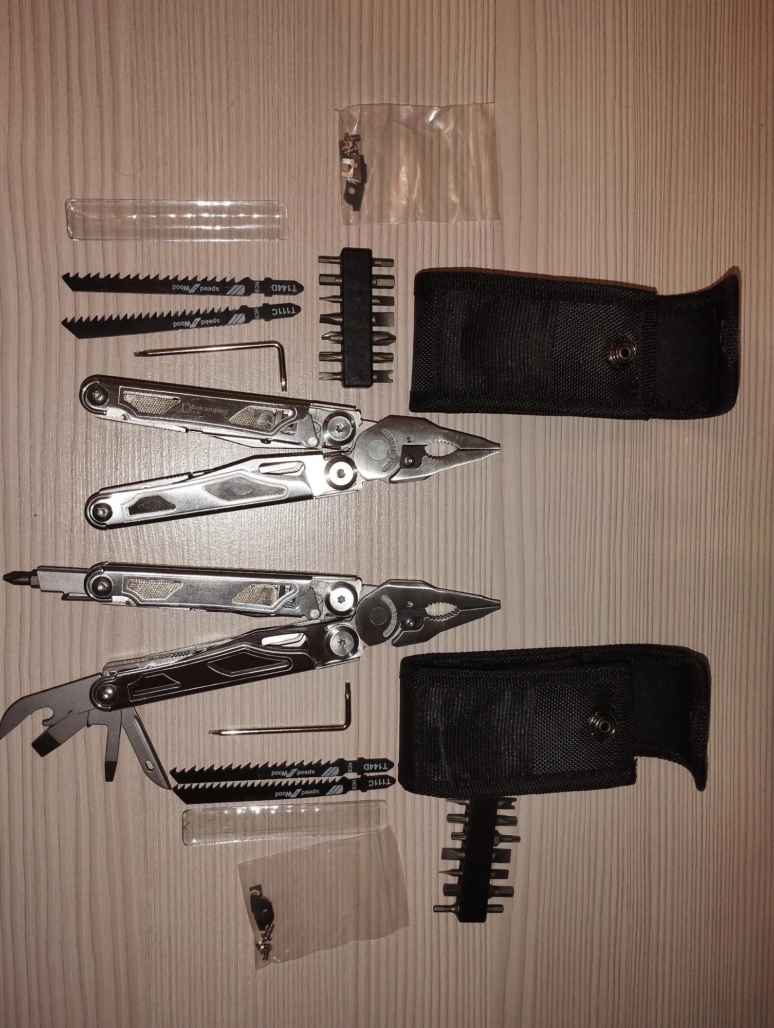 Хороший инструмент, который всегда под рукой. Не идеальный, конечно, но явно лучше того чем я периодически пользовался 15 лет (последнее фото). Для бытовых задач подходит прекрасно. Если хочется гнуть и перекусывать стальную арматуру, пилить вековые дубы, резать листовой металл, рубить тростник, то нужно поискать что-то другое. Плюсы: Нож острый, ножницы прекрасно режут и бумагу и ногти, изоляцию с проводов снимает хорошо, кусачки перекусывают медный провод. Остальное пока не проверял. Минусы: Один мультитул тугой, что-то шоркает при складывании. В комплекте второго полотно пилы погнуто (выправил руками). В целом покупкой доволен. Думаю, стоит добавить шайбочки и хорошенько смазать все узлы. Ну и пользоваться аккуратно без фанатизьму.Roman V. 4 июня 2024