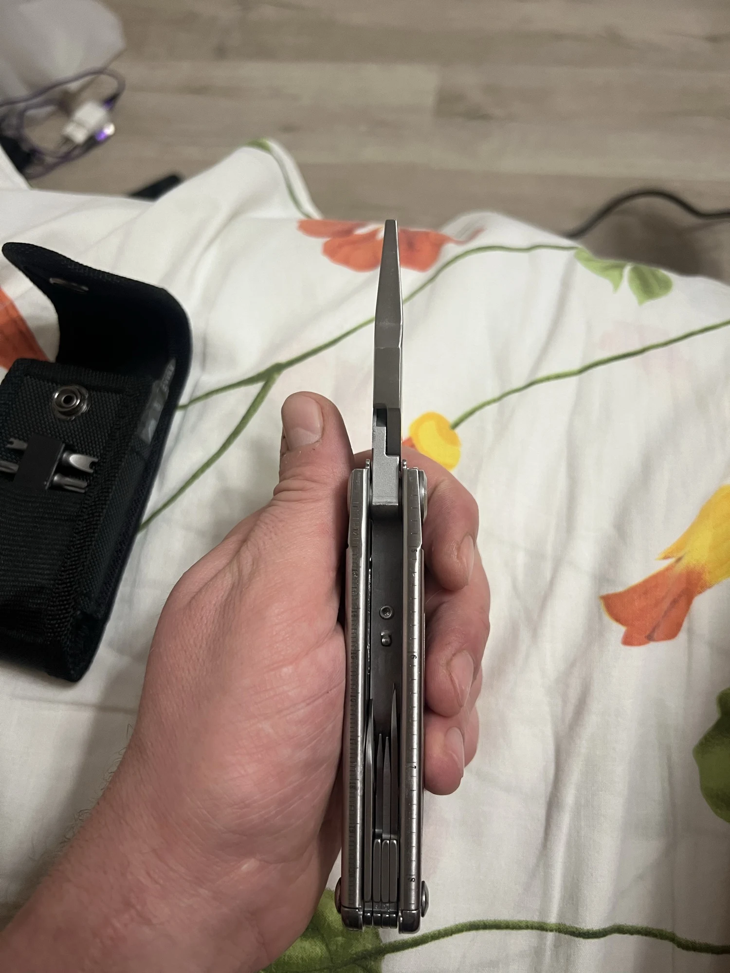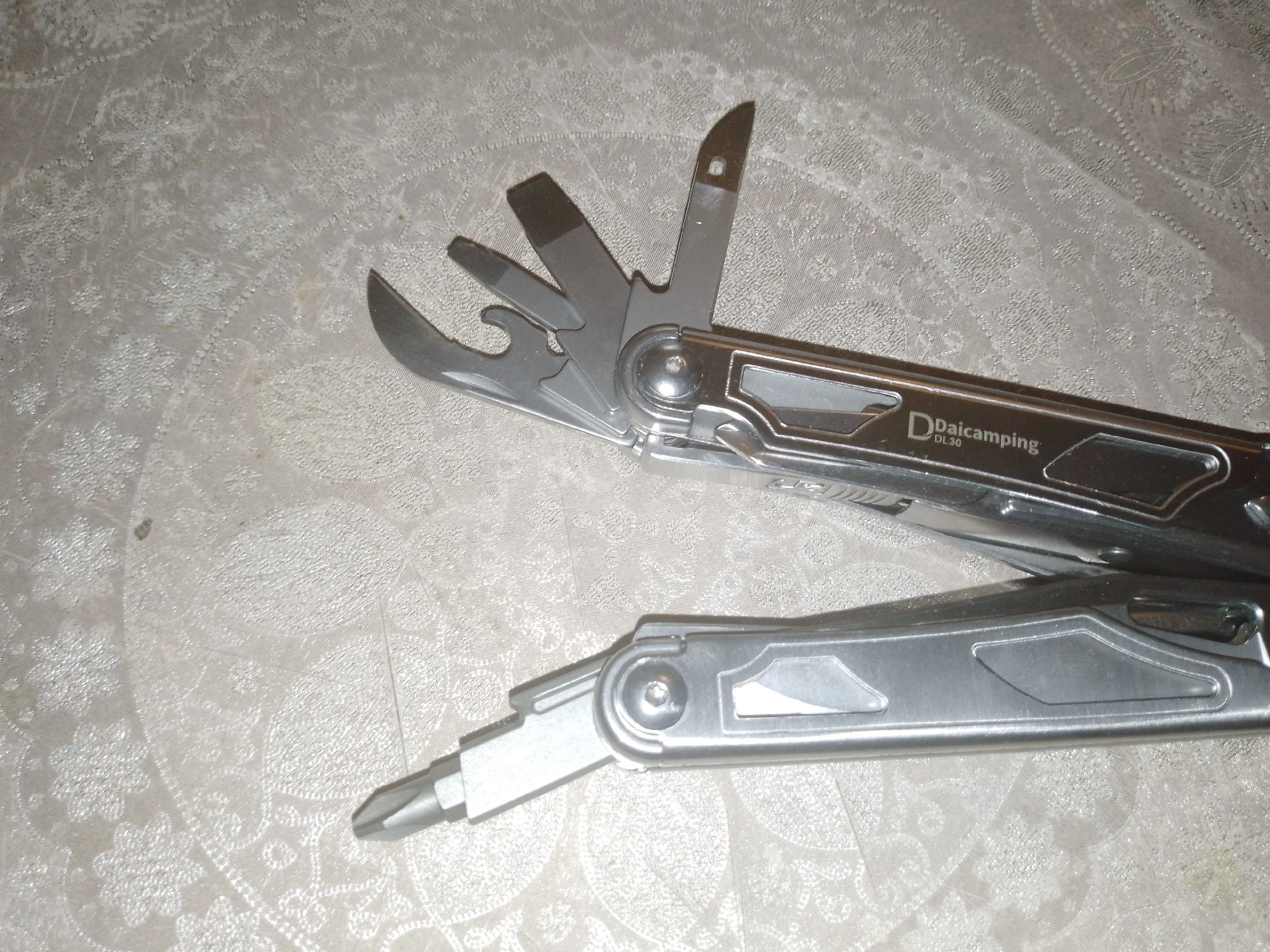 дошло за неделю. комплектация и функционал соответствуют заявленной. вкратце - дешман, но за 2500 неплохой инструмент. 5 звёзд за соотношение цена- качество. как на проф. инструмент не рассчитывайте, слабоват мультитул, но оно и понятно за эту цену. к делу - плоскогубцы при попытке изгиба боком велосипедной спицы, дают люфт (на фото), и просто расходятся в стороны. чем жоще усилие, тем больше расхождение губок. сталь мягковата. при этом, вы рискуете отколоть край режущих кромок, как я ( на фото). хотя, что до, что после скола, спицу они перекусить способны. схождение плоскогубцев не идеальное, но пойдёт. Ножи хорошие, сталь выглядит неплохо. заточка с завода срезает волоски на руке, режет лист бумаги на весу, и спокойно срезает деревяшку. (Но бриться не получится) Серрейторный нож также хорошо грызет дерево. Ножницы тоже хорошо стригут, хоть волоски, хоть ткань, но, кмк, быстро разболтаются - заклёпка не внушает доверия. Надфиль, на удивление, спокойно стачивает как головку у спицы, так и остриё шила (фото). Обратная сторона точит ножи, но насколько её хватит - большой вопрос. Линейке не доверяйте - шкала сильно пляшет. Отвертка с битами работает, но проверить биты на большое усилие негде. открывашка для консервов тоже норм, работает. хотя оплётку с проводов удобнее снимать серрейтором. В общем, для серьезных вылазок не пойдет, а вот на дачу или рыбалку/шашлычки вполне себе годный мультитул. в руках держать приятно, заусениц, острых краёв нет. Как говорится - думайте сами, решайте сами купить или не купить)Mihail M. 11 декабря 2023