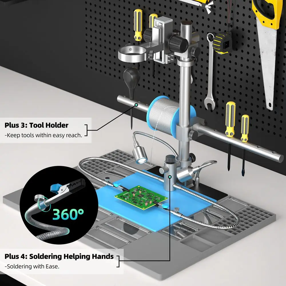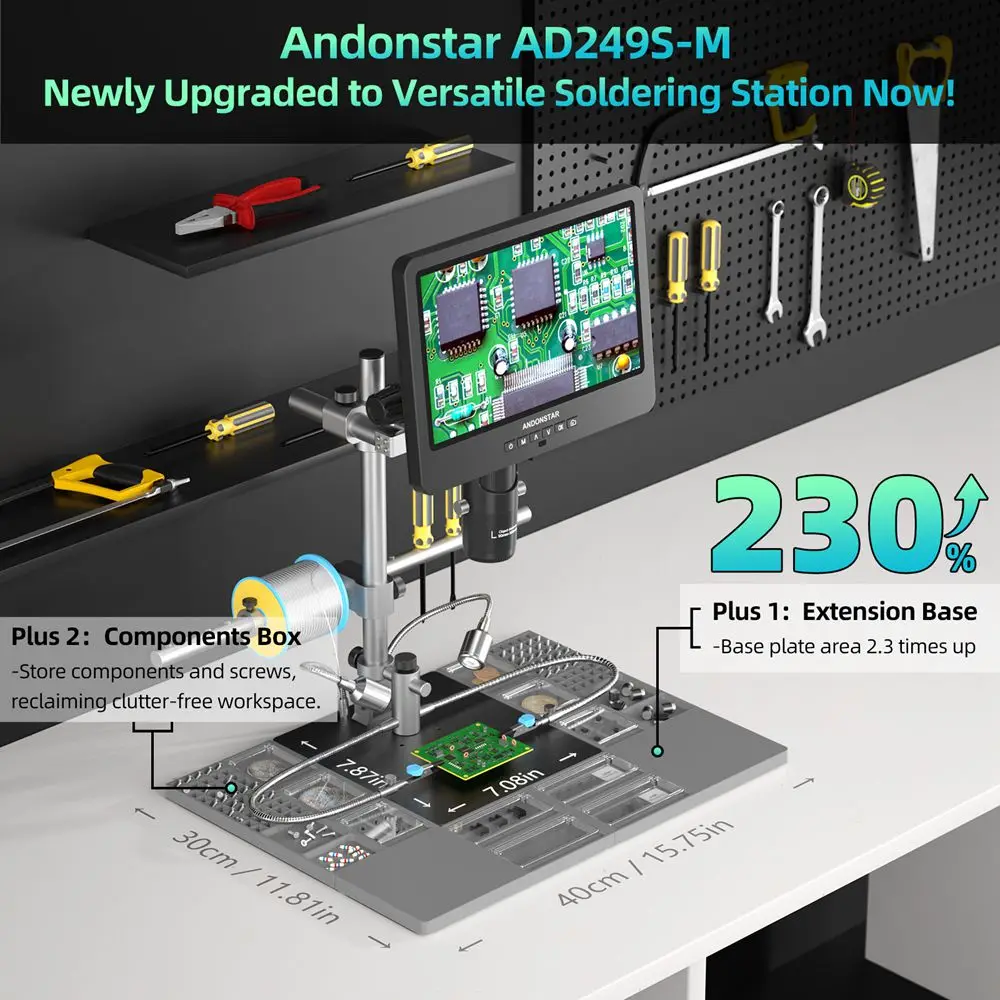 Andonstar 2024 10,1-дюймовый 2000X UHD 2160P HDMI цифровой микроскоп обновленная подставка плюс для профессиональной печатной платы паяльная микроскопическая станция 3 линзы для подключения ПК для печатной платы, проверка припоя для ремонта SMD
